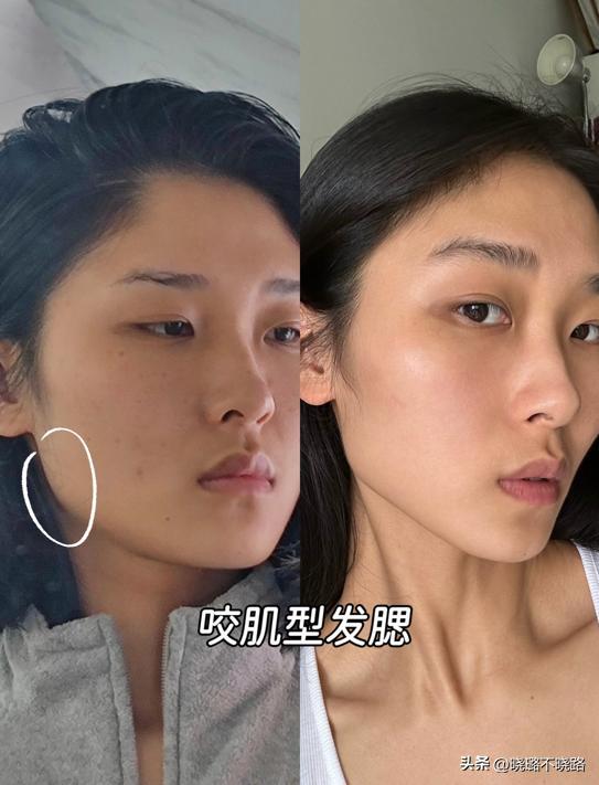 (2)肌肉型發腮:過度咀嚼+不良習慣,咬肌發達成“方臉”