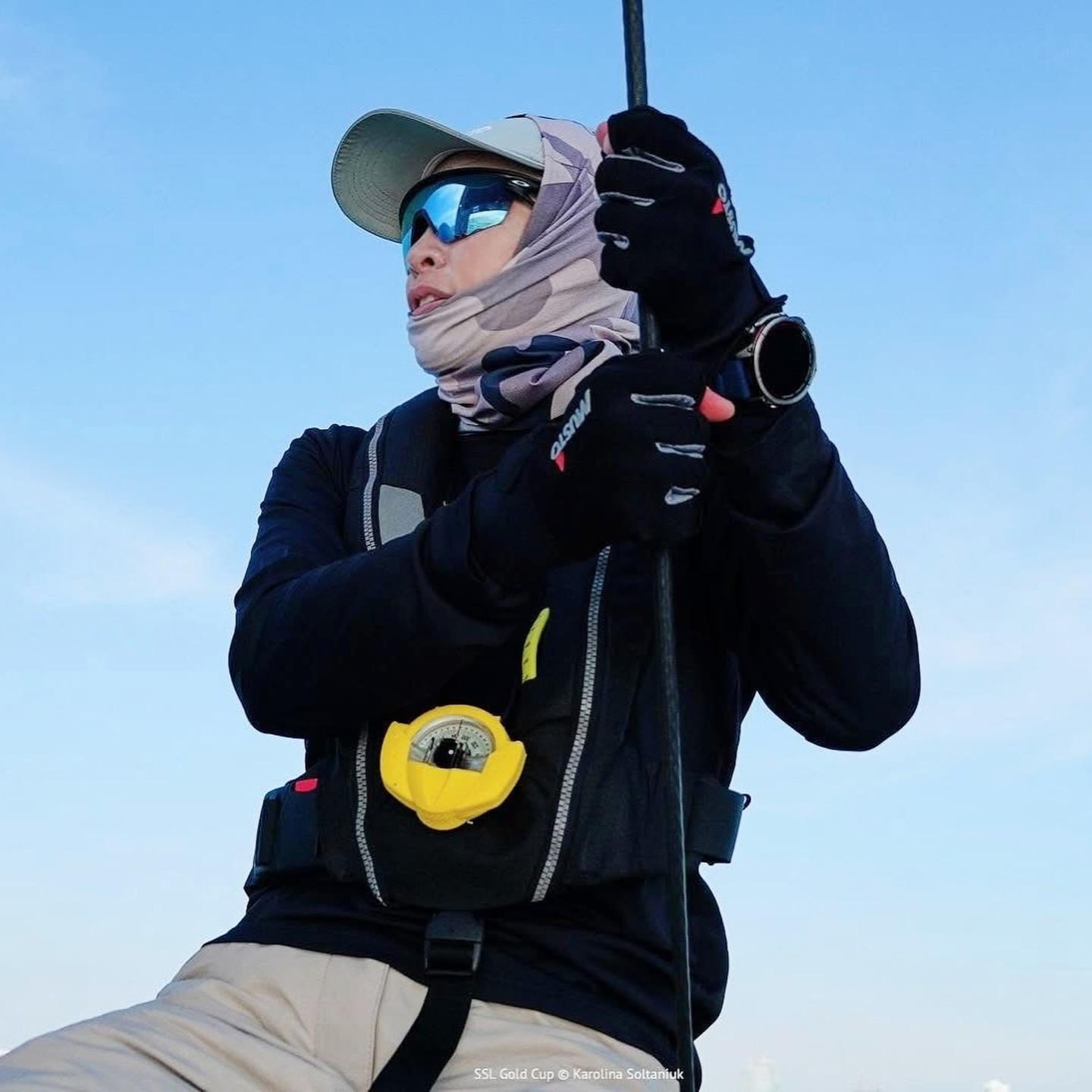 在帆船訓練與比賽中,蘇提達的穿搭完美詮釋了“功能大於形式”的原則。她選擇的黑色防水防風特殊航海服,採用高透氣、高耐磨的專業面料,能夠有效抵禦海上的風浪與水汽,保障運動安全。