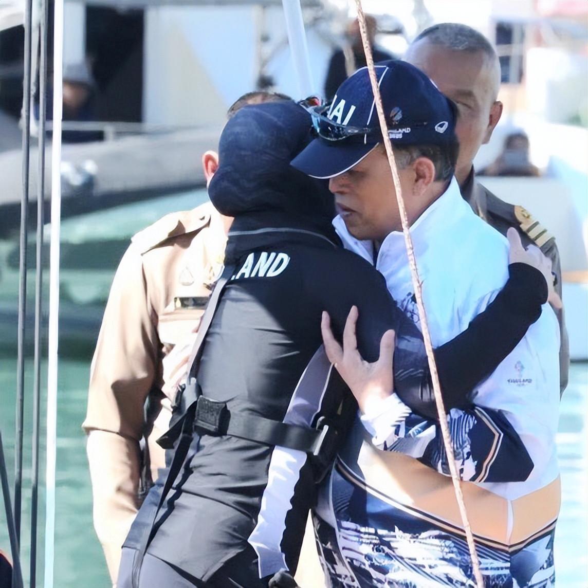 當蘇提達接過泰王遞來的花束時,恪守王室等級禮儀的她以跪姿相接,盡顯恭謹;而在登船前,兩人罕見當衆擁抱,短短几秒的溫情相擁,打破了王室的疏離感,讓觀衆窺見這對夫妻間的微妙情愫。泰王爲她佩戴金牌後,更細心整理獎牌綬帶,蘇提達燦爛的笑容裏,藏着榮耀與被疼愛的雙重喜悅。