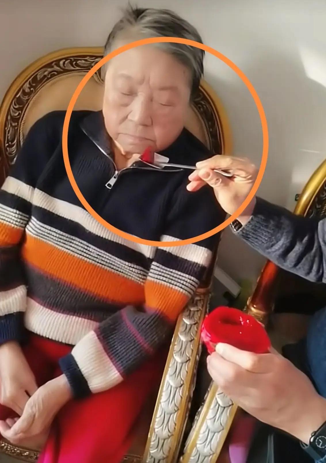 年紀大了就會特別怕冷,即便室內二十三四度,也需要穿毛衣。看着丁勇岱細心的喂母親喫水果,就知道母子感情特別好。