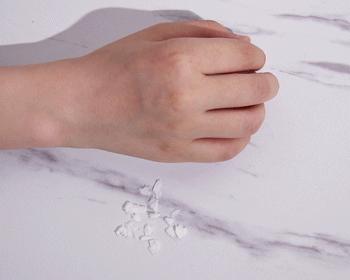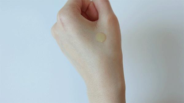 塗在手背上按摩一會兒就吸收乾淨,就算立刻去碰小紙屑,也只會沾到一點點。▼