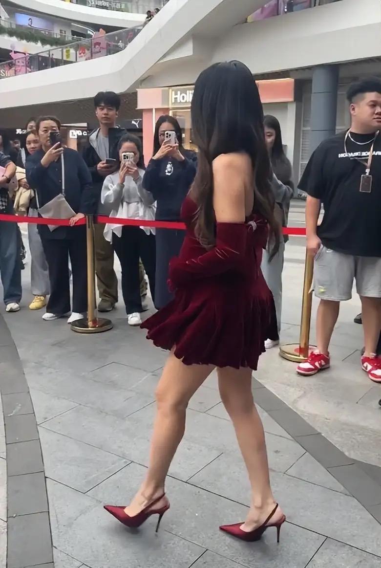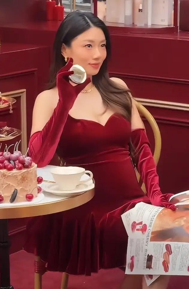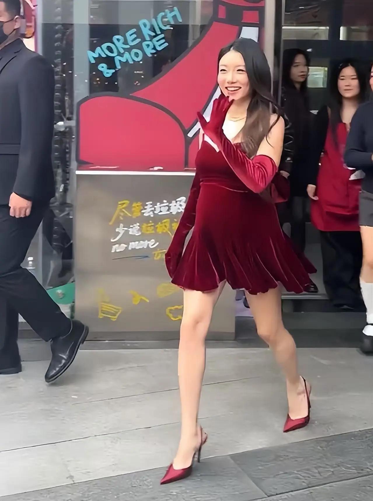 畫面中,程曉玥穿一條酒紅色的絲絨短裙,沒有名媛貴女的氣質、反而帶着幾分豔俗和廉價。