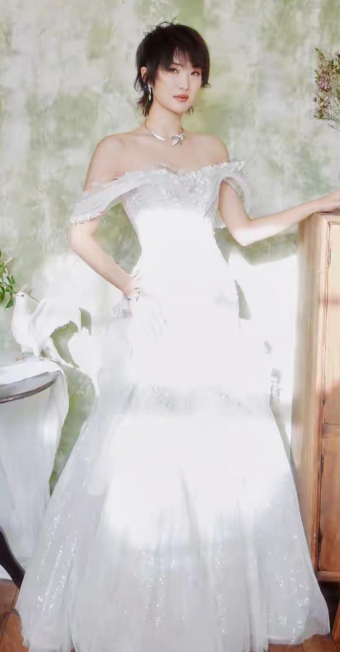 白色本是最考驗氣質的顏色,卻被姚安娜駕馭得恰到好處,既不失少女的純淨,又兼具名媛的優雅,恰如古詩所云 “清水出芙蓉,天然去雕飾”。這種造型之所以出彩,在於它精準契合了姚安娜的氣質 —— 簡約中見精緻,華麗中藏內斂。