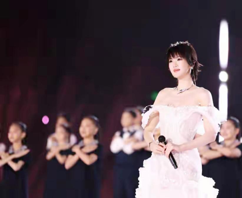 2025 年末的《鴻蒙星光盛典》上,姚安娜的亮相堪稱驚豔。聚光燈下,她身着華服,一曲《太陽下山有月光》婉轉悠揚,歌聲如清泉漱石,空靈澄澈;舞臺上的她儀態端莊,舉手投足間既有芭蕾舞多年浸潤的優雅,又有青年藝人的靈動鮮活,將歌曲中的溫柔與力量詮釋得淋漓盡致。