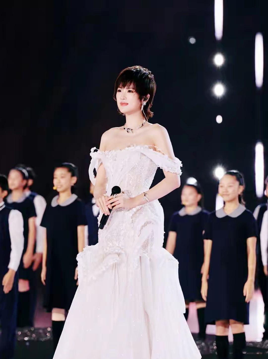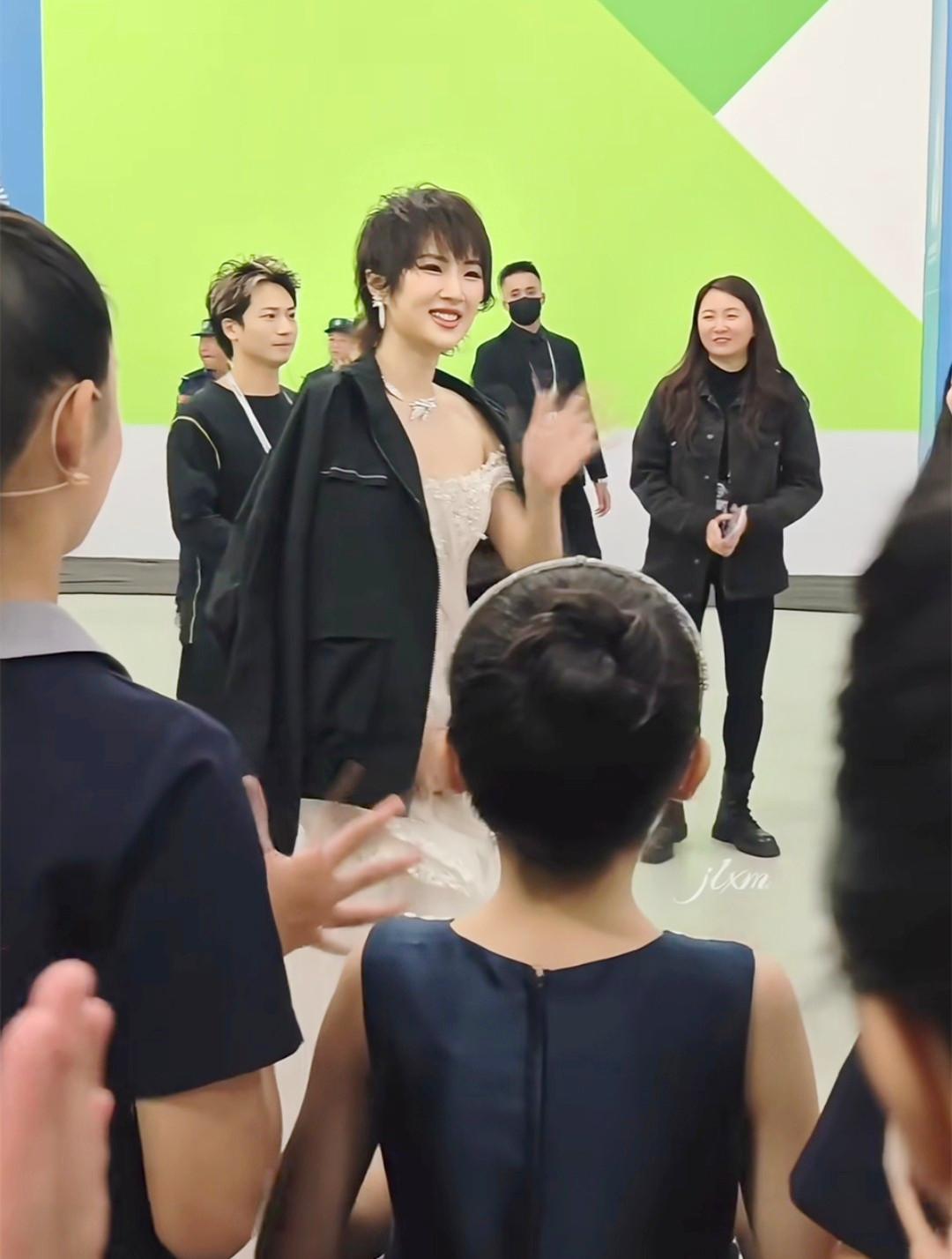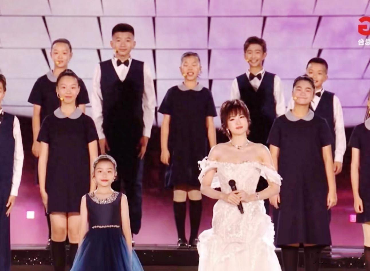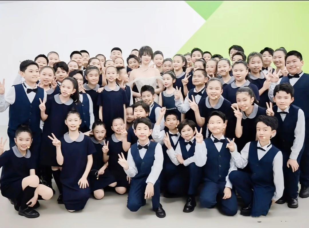 一曲唱罷,現場掌聲雷動,屏幕前的觀衆亦紛紛感嘆 “人美歌甜,氣場全開”。更動人的是,演出結束後,她特意走到後臺,與伴唱的孩子們親切打招呼、合影留念,這份不疾不徐的溫柔與尊重,恰是 “質勝文則野,文勝質則史” 的最好註解。