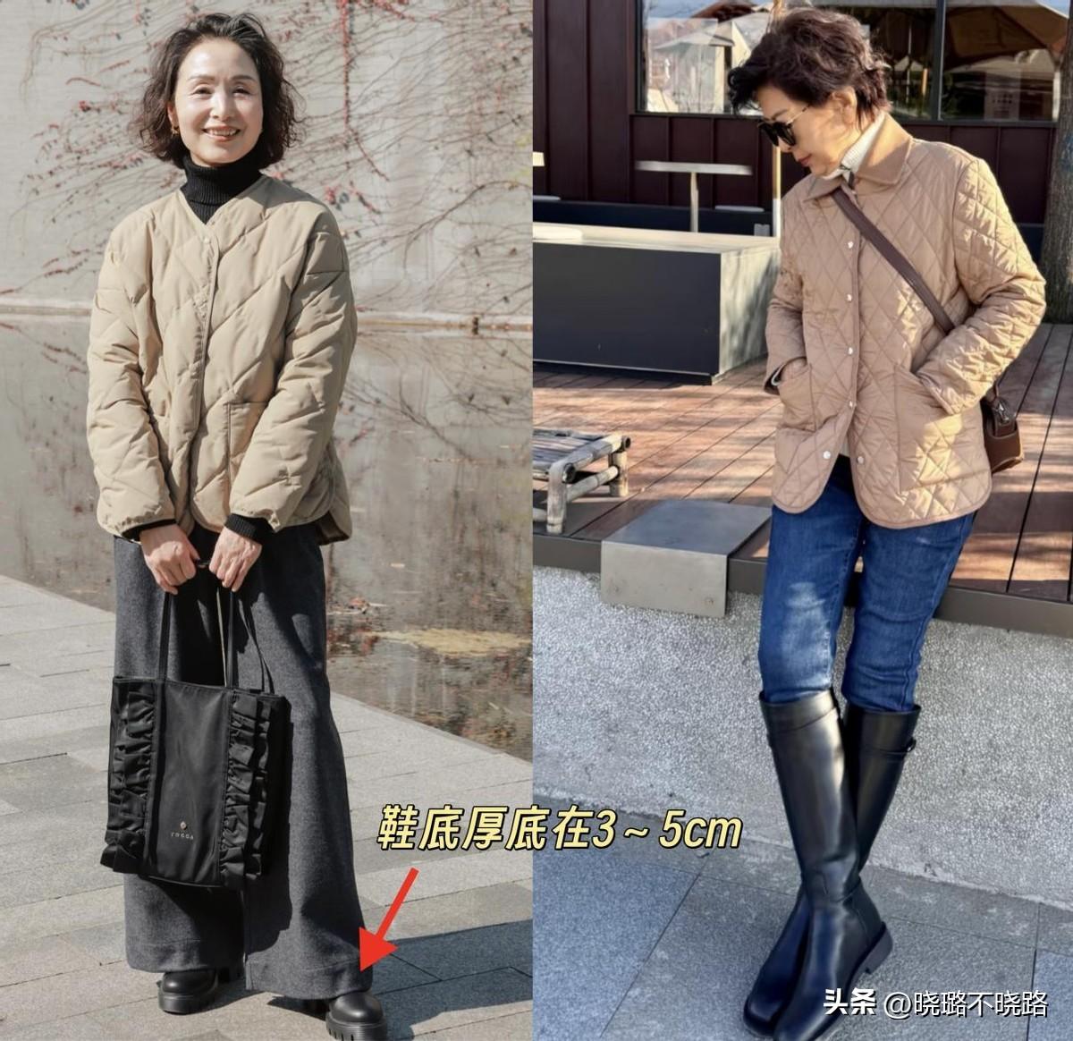 推薦大家可以選擇帶點厚底的靴子,鞋底高度在3~5cm左右,鞋面和靴筒貼合度高一點,才能避開笨拙感,穿出顯瘦又顯高的效果。