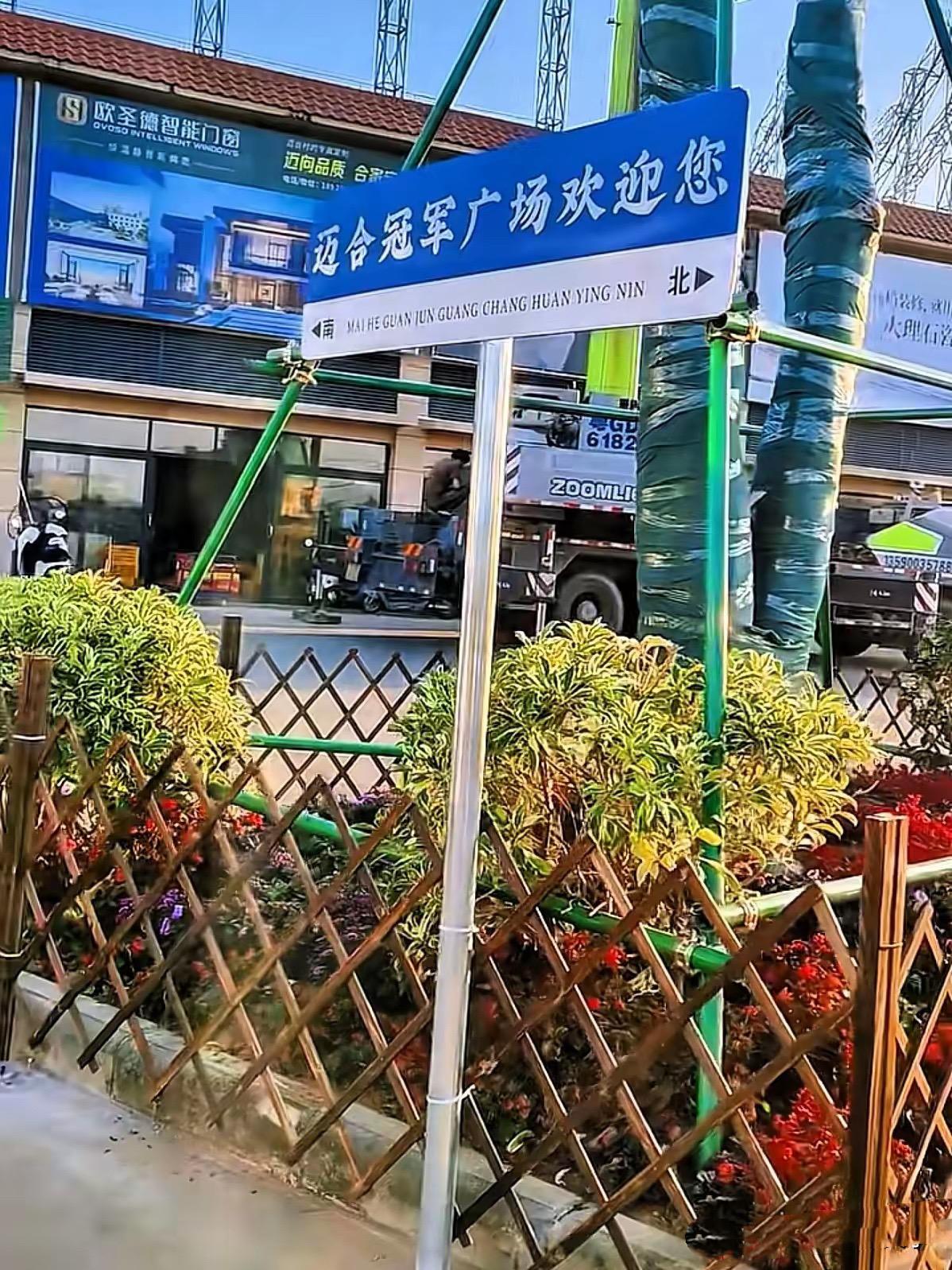 前不久遊客們在全紅嬋爸爸的商店裏看到了一個“邁合冠軍廣場歡迎您”的標牌,那時候標牌還在室內,不少遊客都跟標牌合影,非常開心。