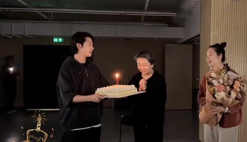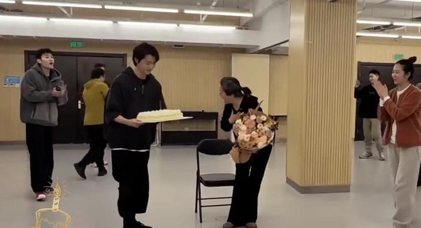 當天江珊並沒有公開是自己的生日,可細心地搭檔們早就準備好了驚喜。在江珊排練完剛想起身離開的時候,就響起了生日歌。
