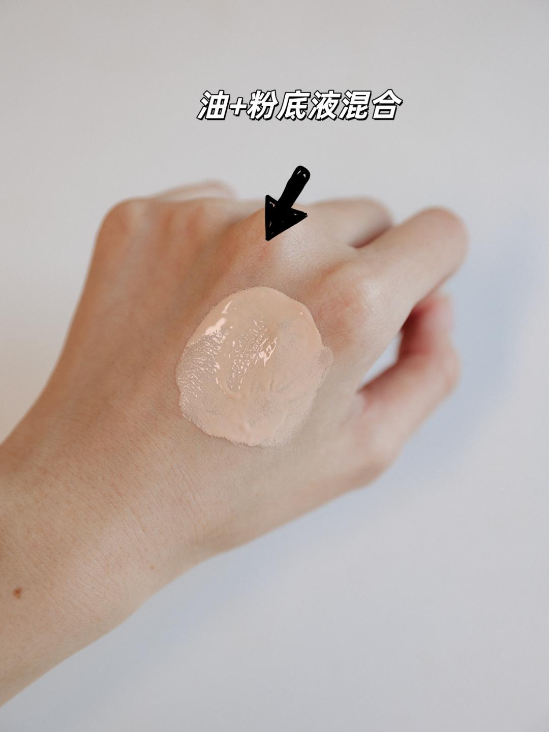 取一點和粉底液混合再上臉,你會發現上妝很貼合,像加了柔焦濾鏡,顯得皮膚質感特別好,幹紋卡粉什麼的都不見了。▼