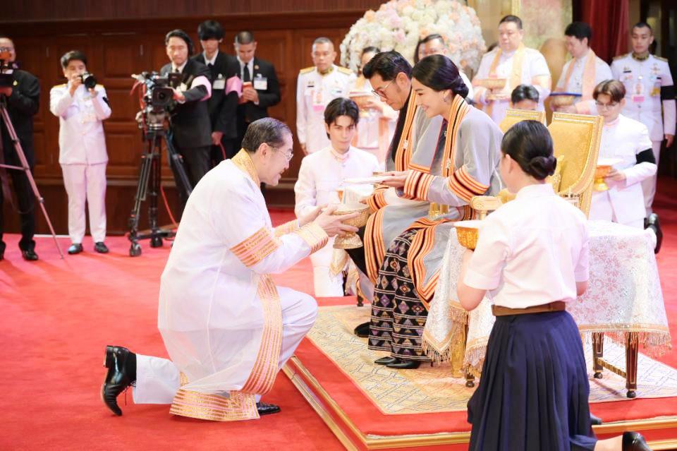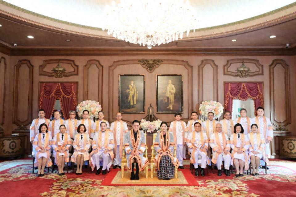 授勳儀式上,校方人員以單膝跪地的恭敬姿態遞上學位證書,這一禮遇與對待泰國王室成員別無二致,彰顯了兩國之間深厚的友好情誼。