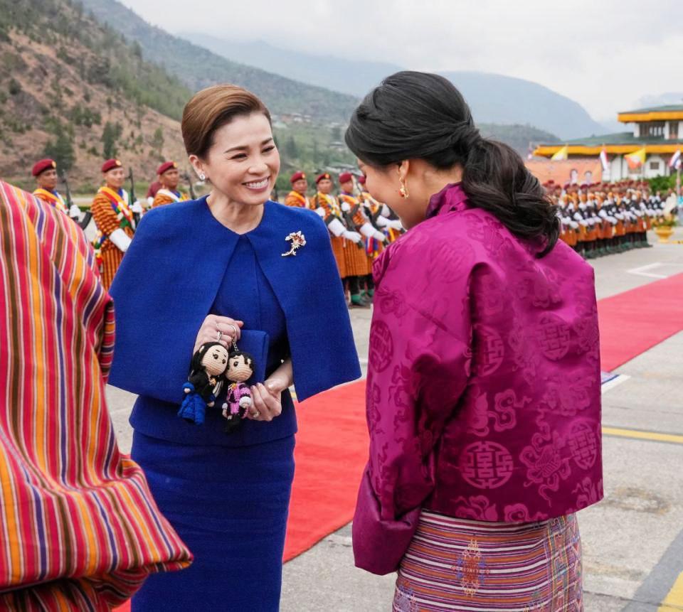 佩瑪王后的服飾,是不丹雪山國度的純淨與莊重的縮影;蘇提達王后的穿搭,是泰國湄南河畔的奢華與靈動的象徵。她們雖穿搭風格迥異,卻在友誼中相互包容、彼此尊重,恰如泰不兩國王室,雖文化有別,卻在交往中堅守友好初心,共築合作橋樑。