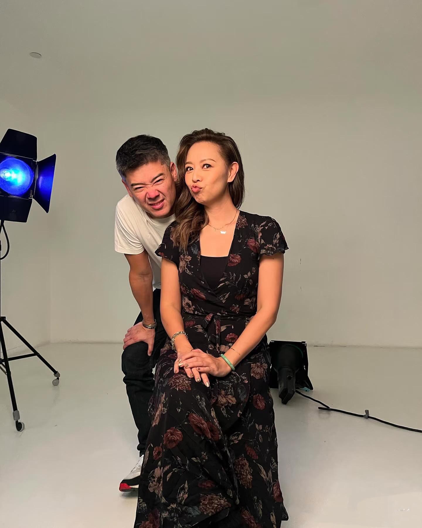 鍾麗淇夫妻倆的合影,非常有趣。他們擺着搞怪的動作,拍下這有趣的瞬間。