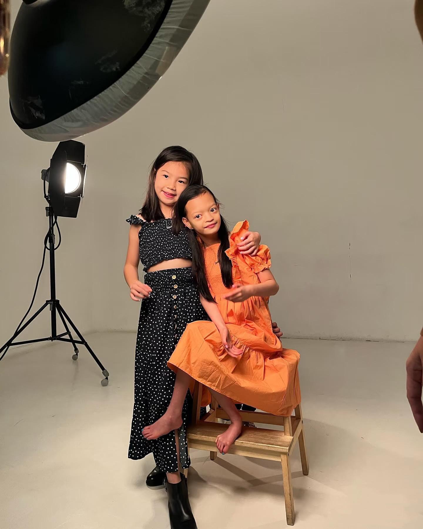 尤其是姐妹倆感情特別好,妹妹陪在Isabella身邊,她就會特別安心。坐在一起的時候,也習慣性用胳膊挽着妹妹。