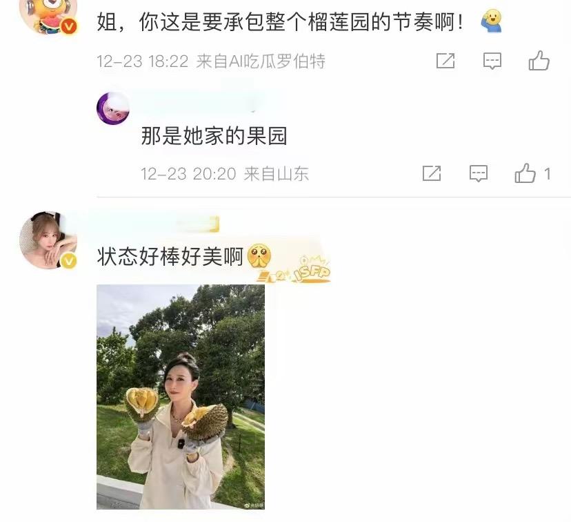 不知道的網友還以爲人家要承包整個榴蓮園呢,其實這裏就是她家的果園啊。
