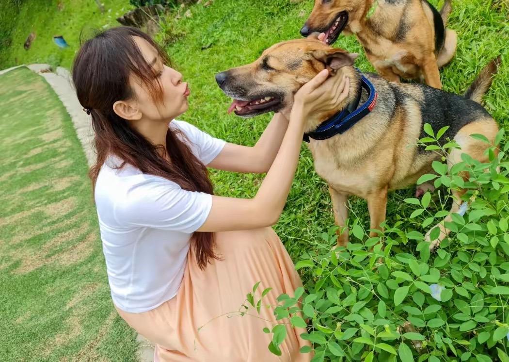 在這個莊園裏,胡靜還可以養狗狗。因爲地方足夠大,狗狗也可以撒了歡的玩。