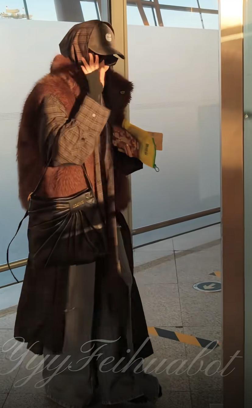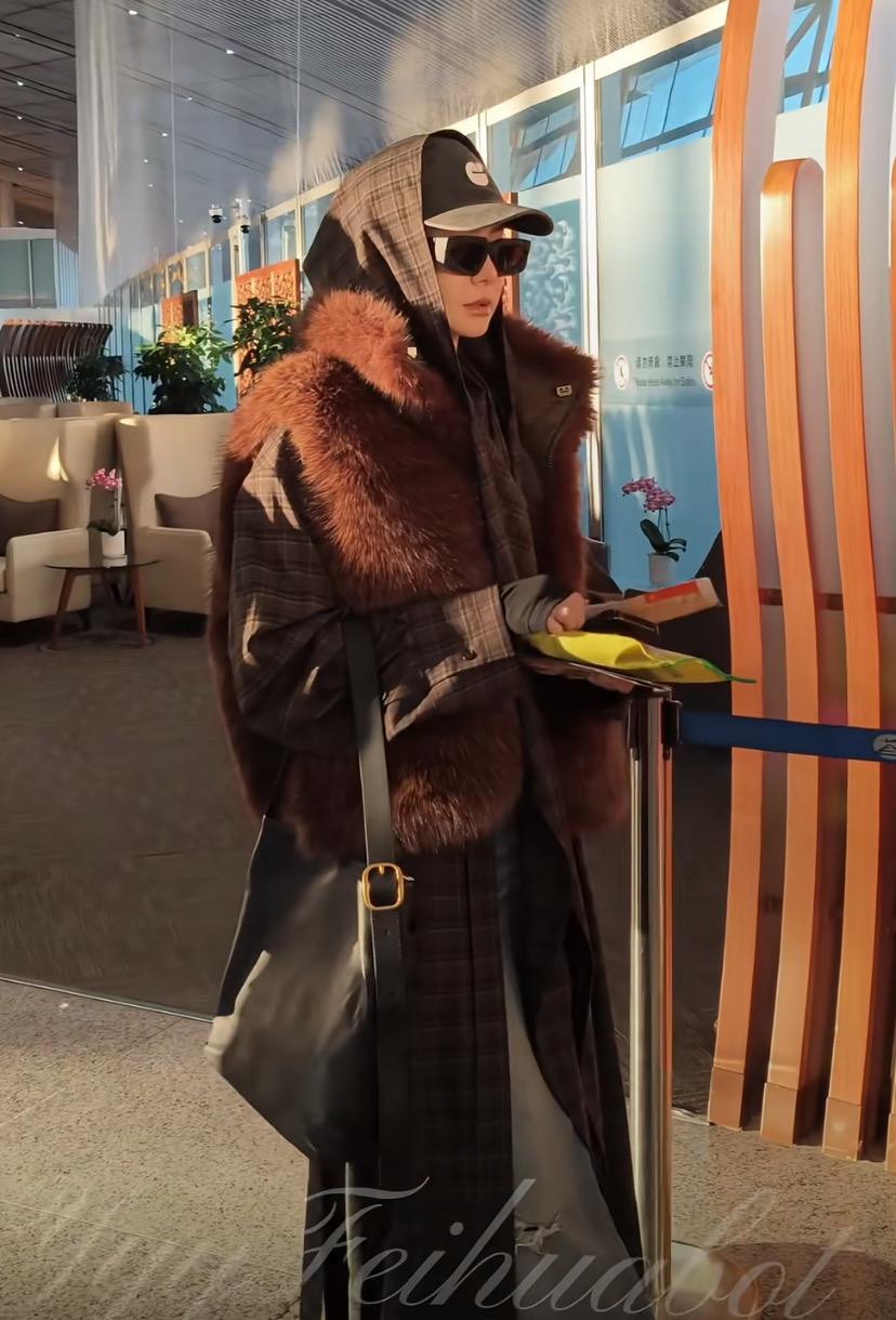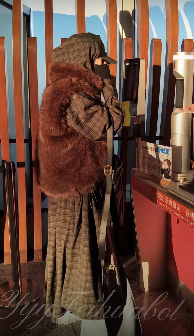 不僅僅是顏值,戚薇的衣品也超級棒。她在這次的旅行中,有多組造型被拍下來。這一身格子外套+皮草馬甲的搭配就很潮流很復古。