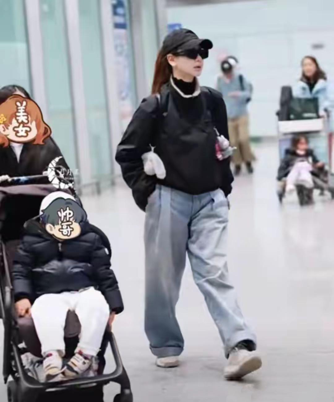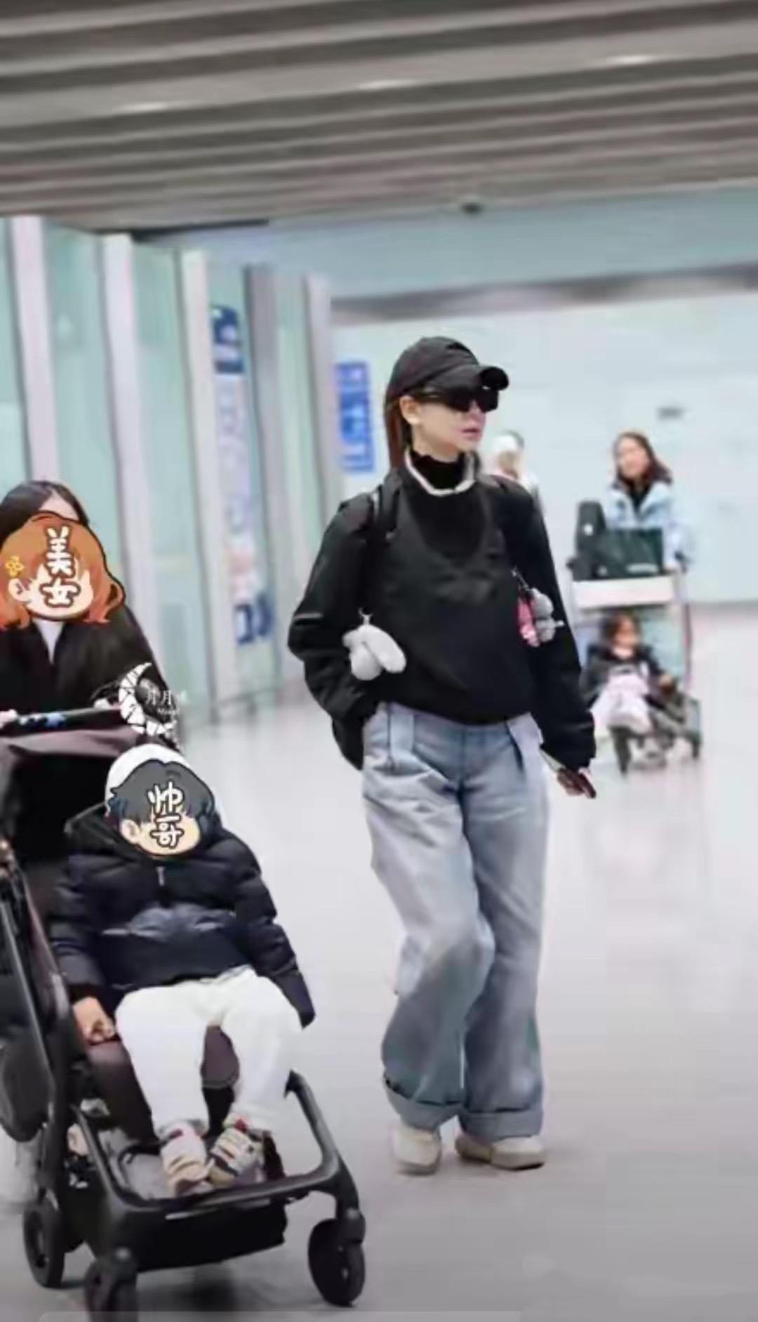 戚薇一家度假歸來,10歲Lucky身高近160cm,推嬰兒車被誤認成保姆