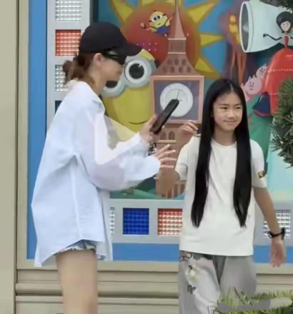 與戚薇並肩的,不是保姆、而是她的女兒Lucky。Lucky才10歲就已經開始竄個子了,目測身高接近160,長大後一定又高又瘦。