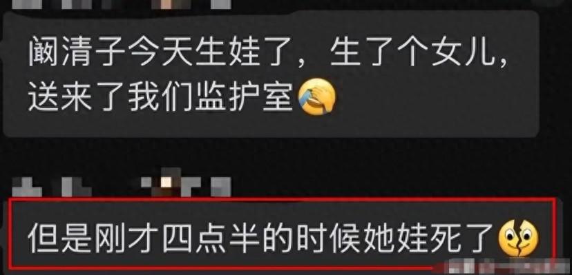 爆料說,闞清子生娃了,早產生了個女兒、送來了監護室。
