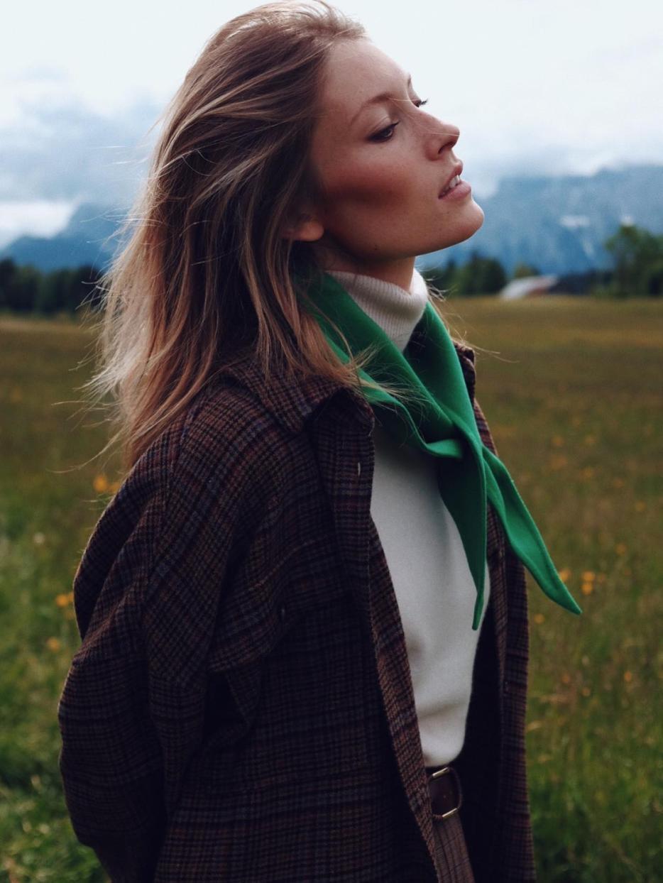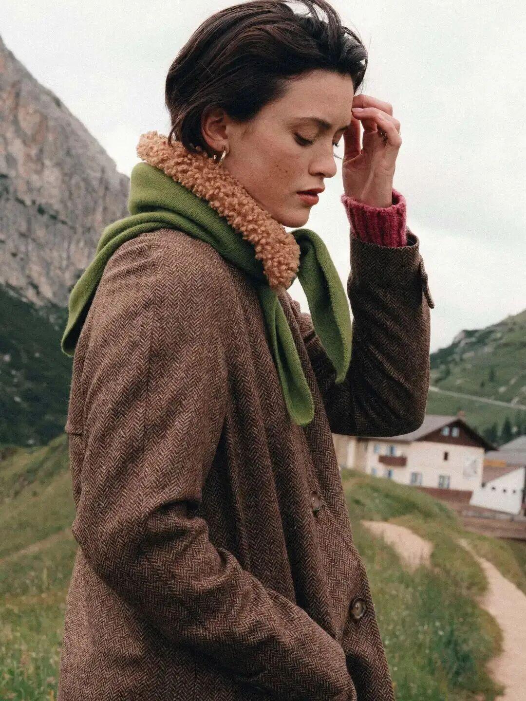松針綠:今年綠色單品很火,一點點綠加在脖子上,也顯得很有生機,可以成爲各種深色外套的“救星”。▼