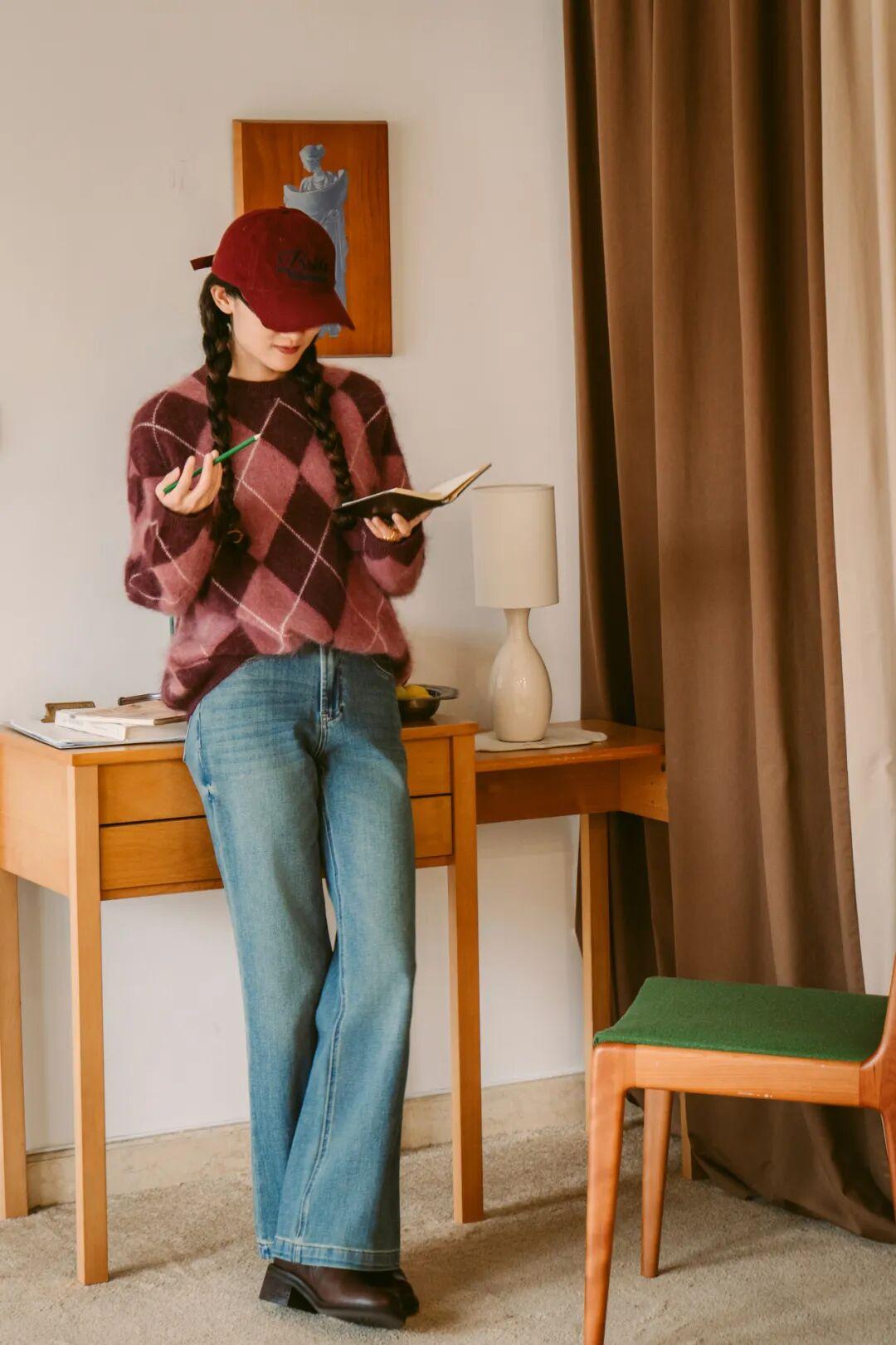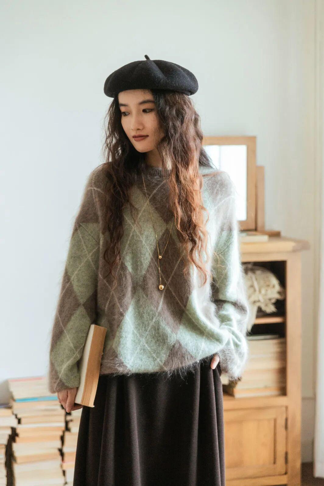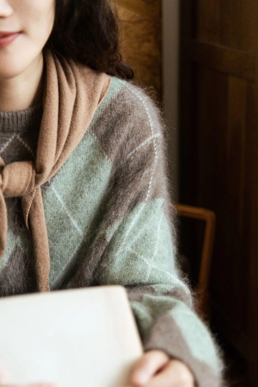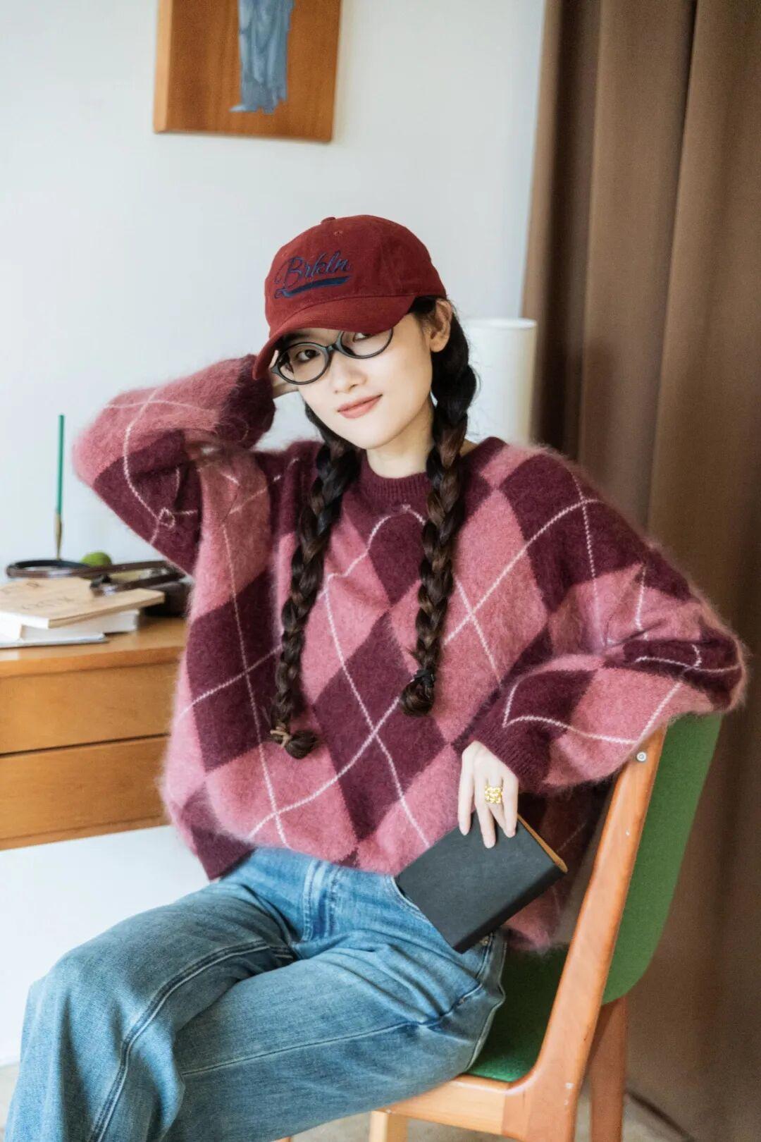 比起純色拉毛衫,菱格紋的加入,既保留了拉毛的軟糯慵懶,又多了幾分學院復古感,整體風格更休閒、溫柔,日常穿也很輕鬆。▼