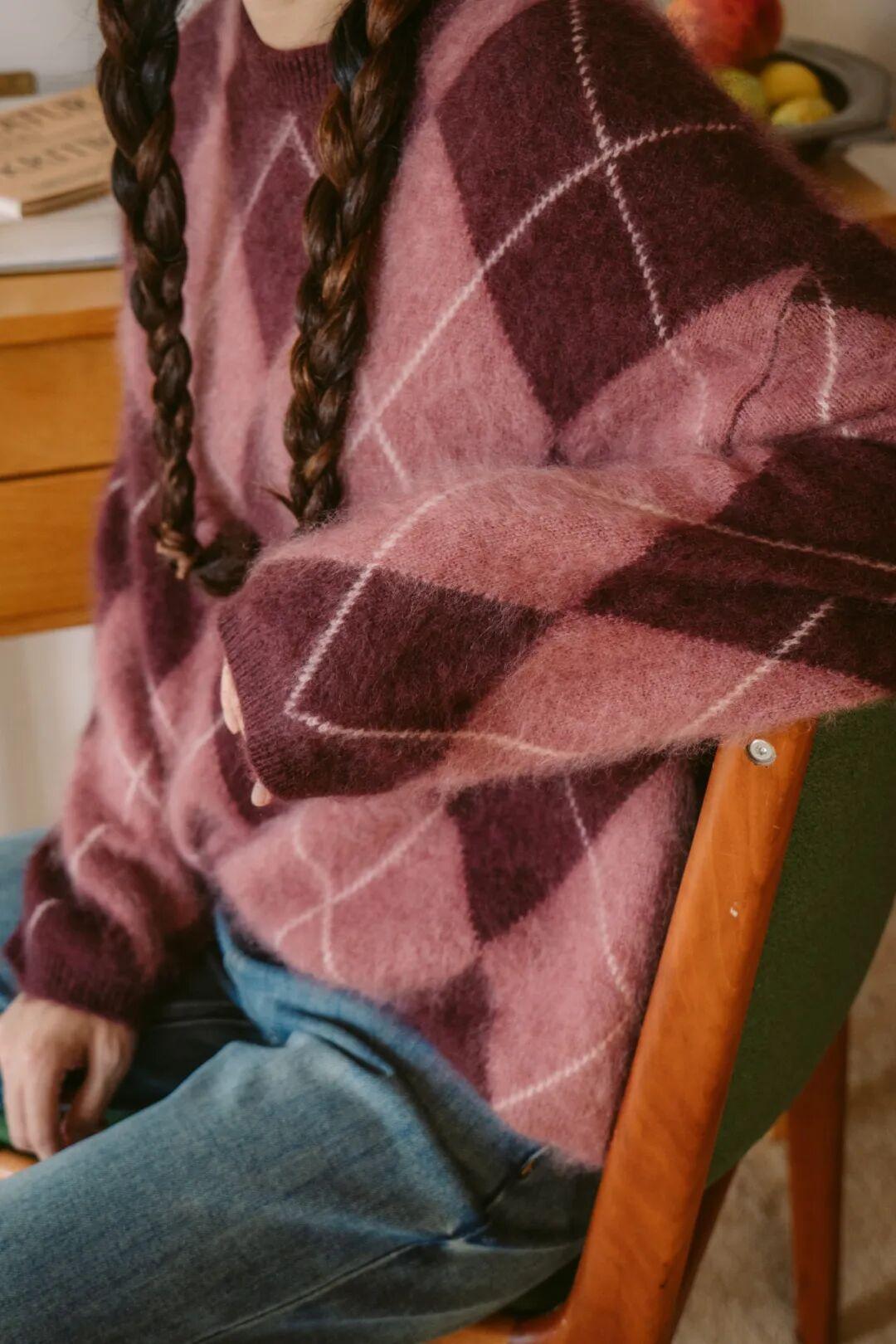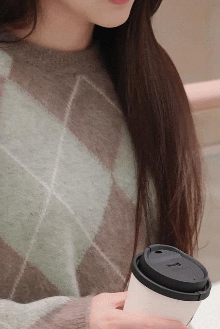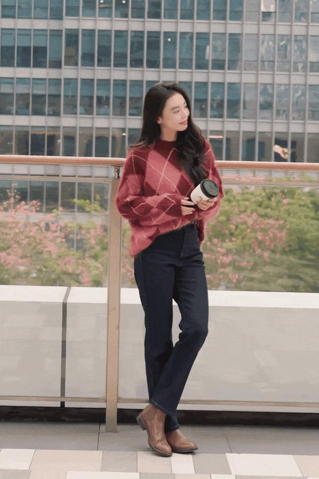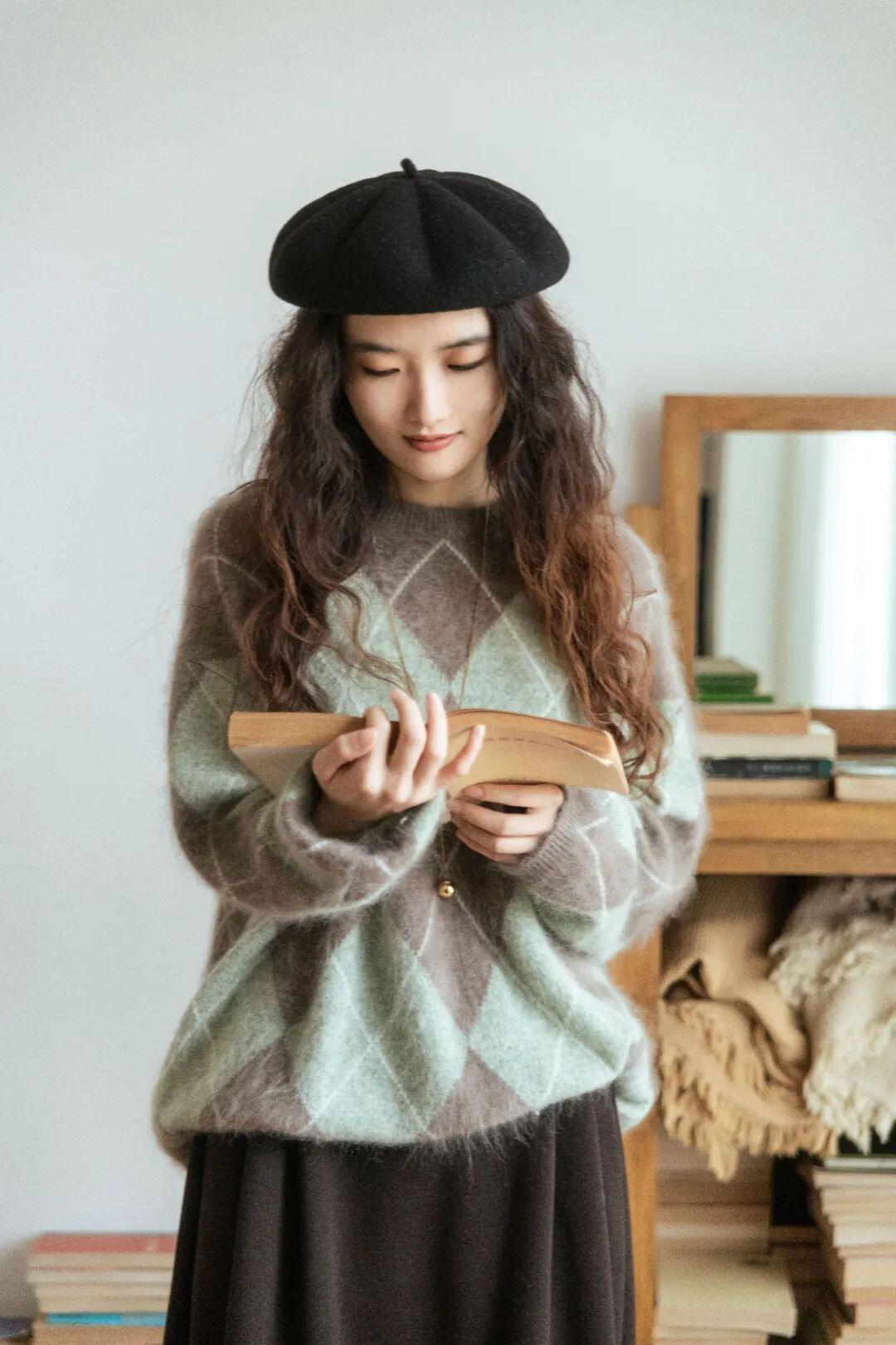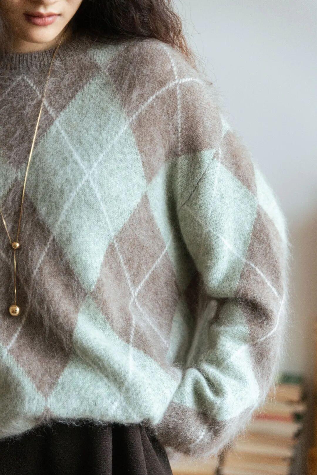 比起純色拉毛衫,菱格紋的加入,既保留了拉毛的軟糯慵懶,又多了幾分學院復古感,整體風格更休閒、溫柔,日常穿也很輕鬆。▼