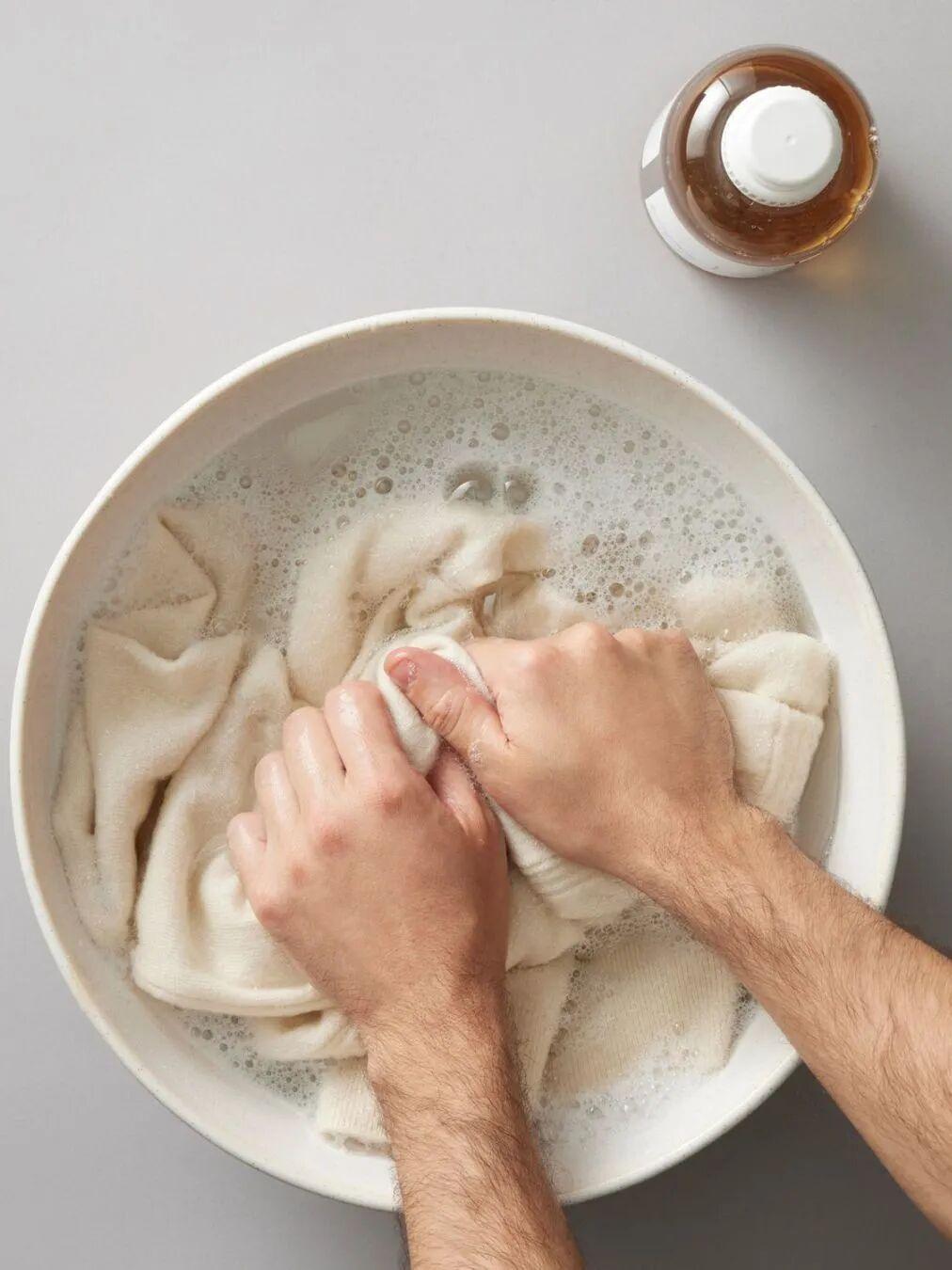 洗好後可以鋪在浴巾上,捲起來輕輕壓幹水分,再平鋪晾乾,這樣毛衣不易變形。▼