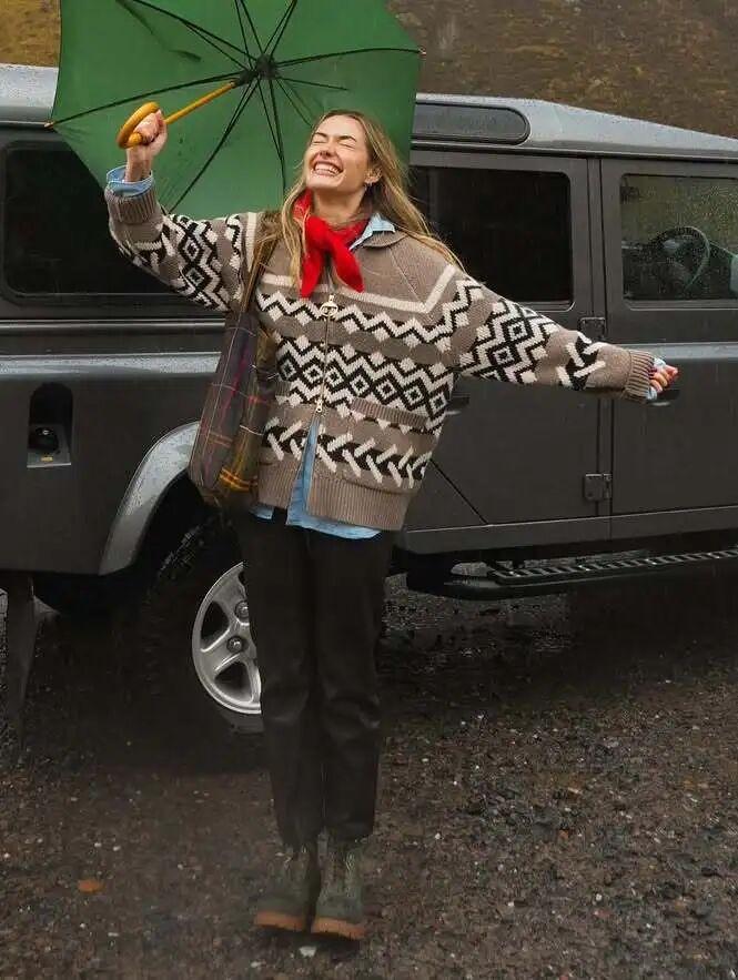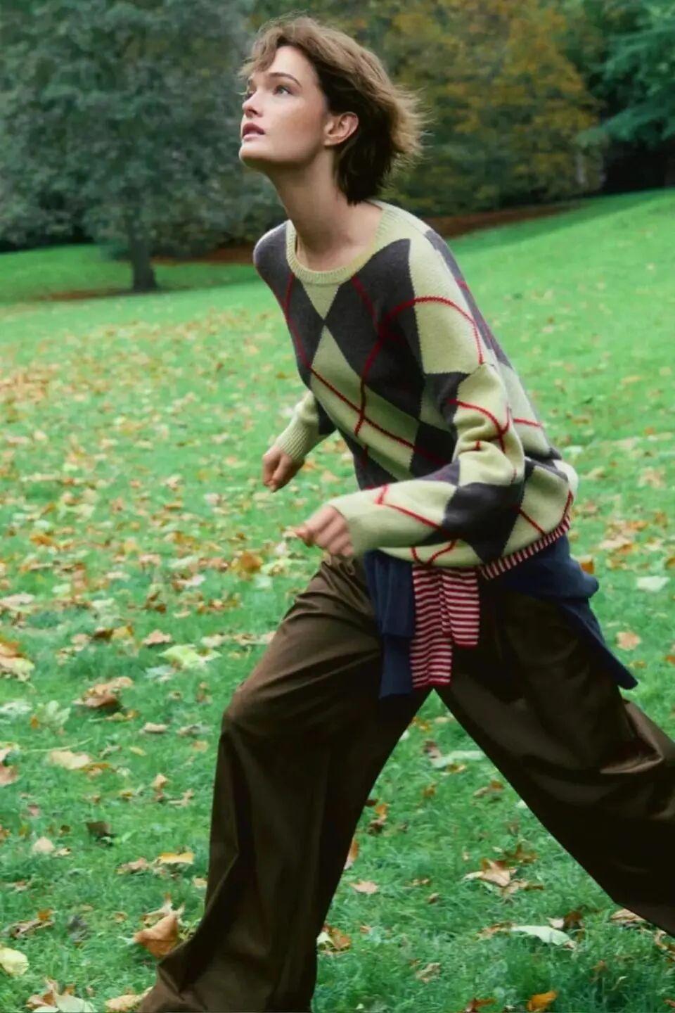 菱格紋真是經典不過時的元素,火了不止一兩年。我前年就穿過棕黃配色的菱格開衫,今年它依舊很受歡迎~▼