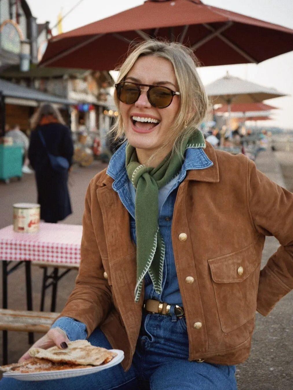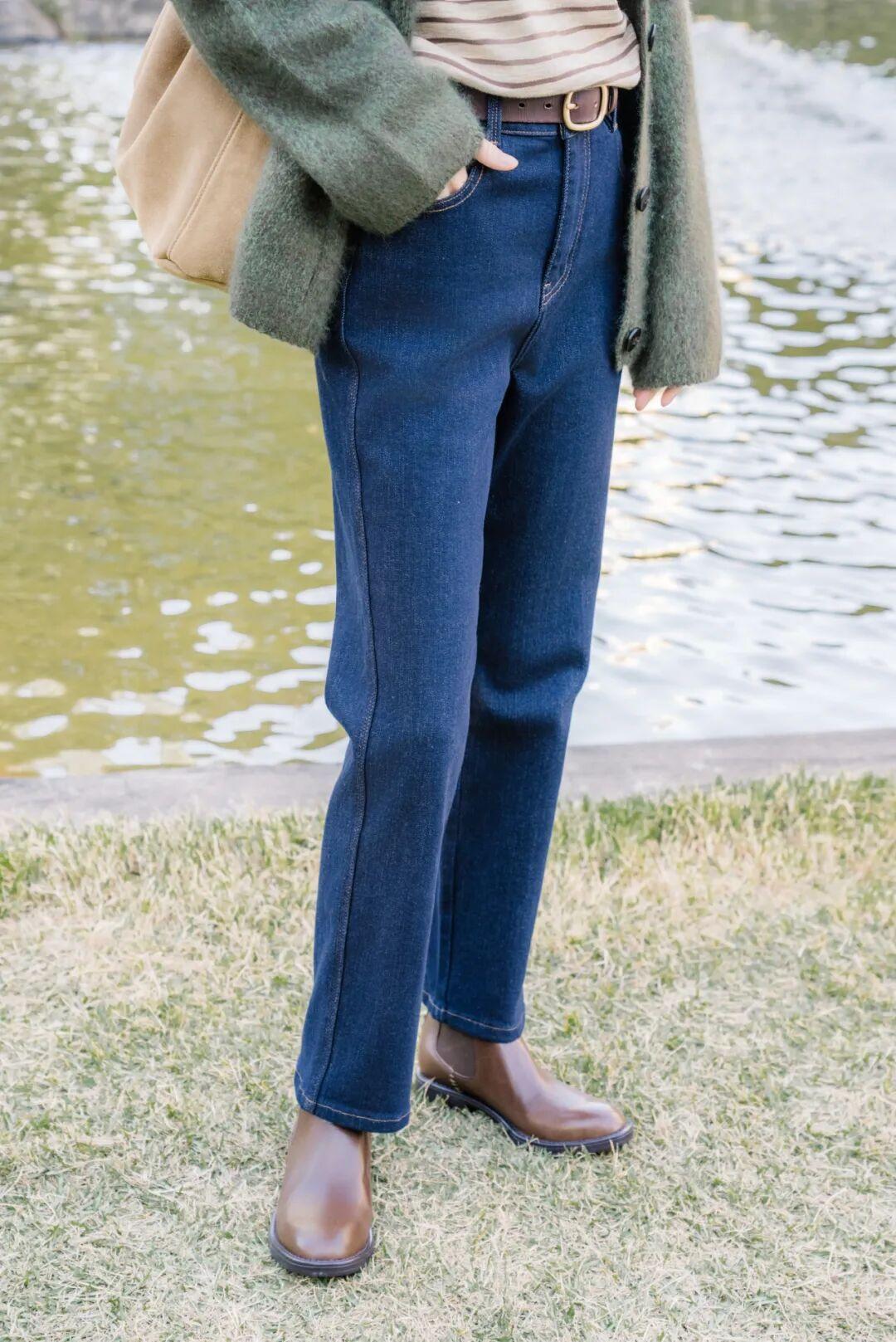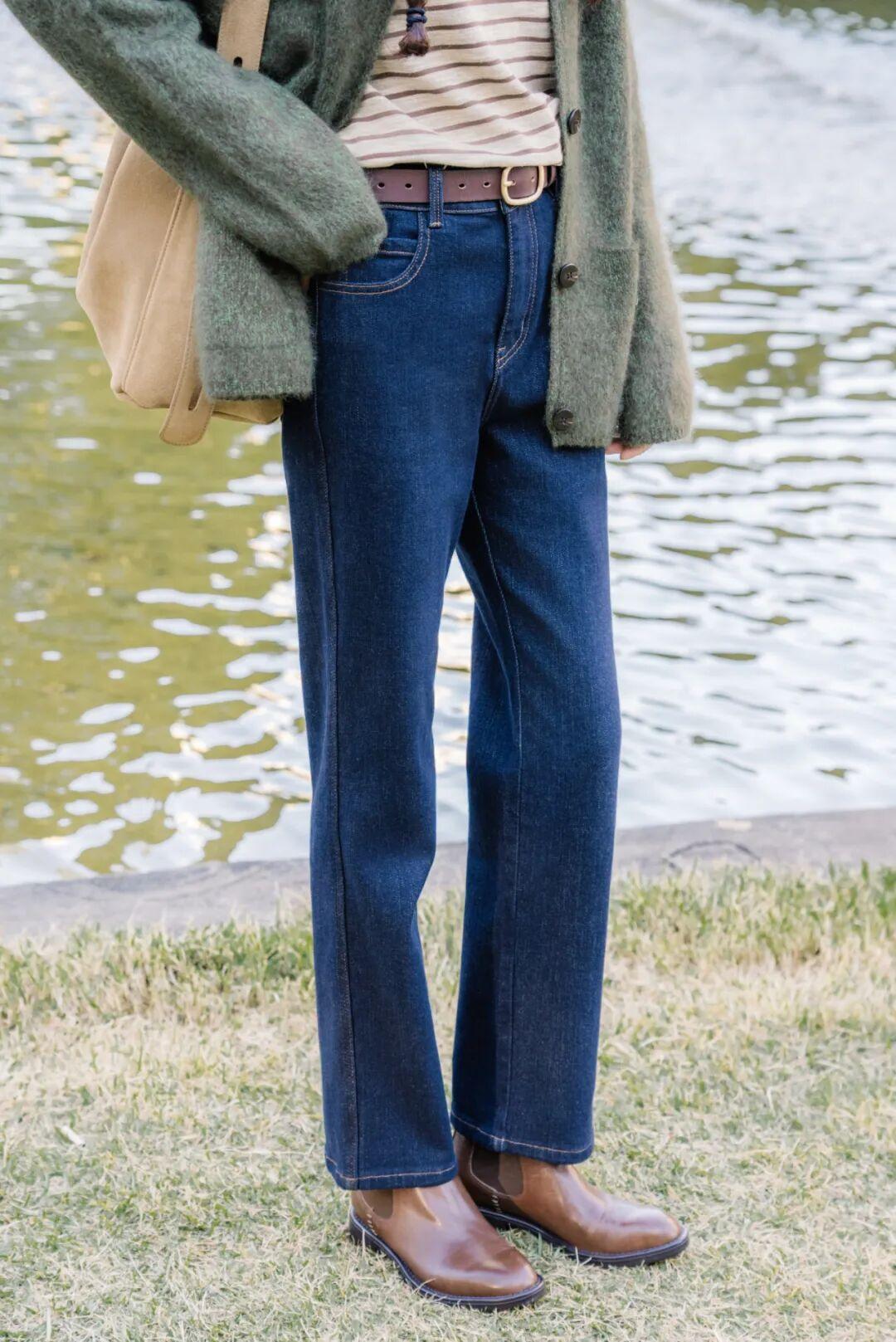喜歡復古率性風的,推薦牛仔原色,未經刻意漂洗,搭配棕色皮帶和短靴,文藝感滿滿。