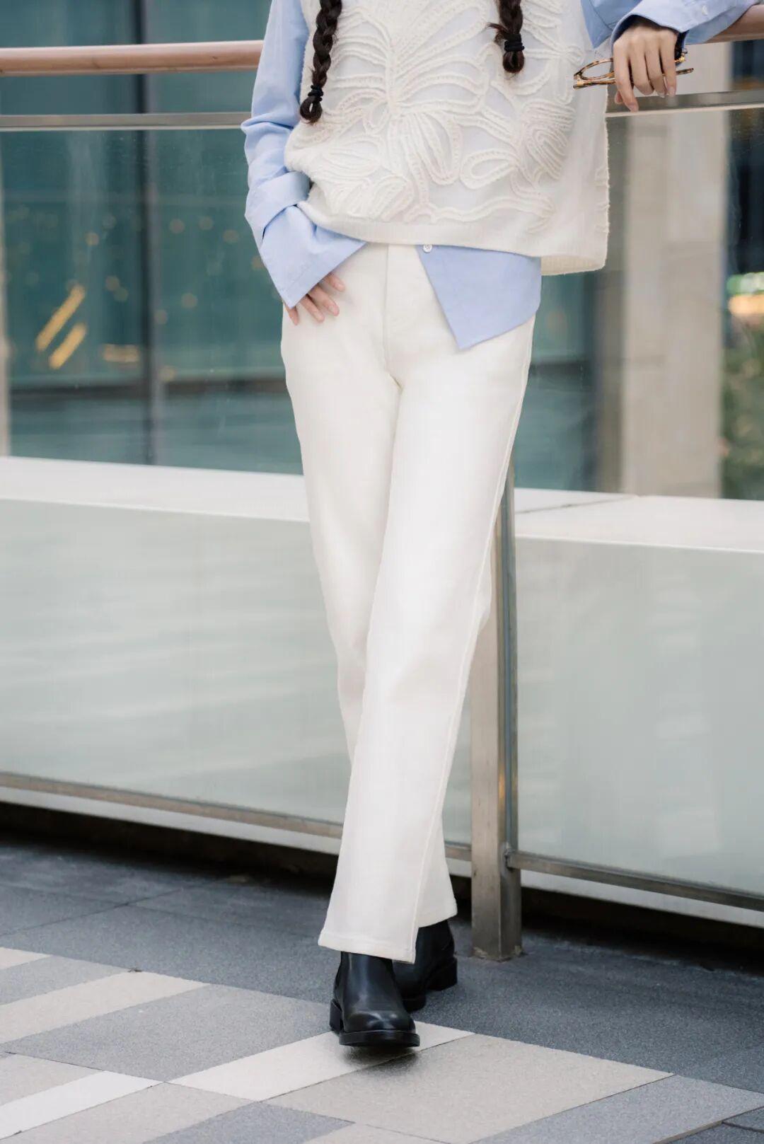 如果衣櫥裏深色外套比較多,更推薦經典白牛仔色,像冬日初雪一樣乾淨,點亮整套穿搭。▼