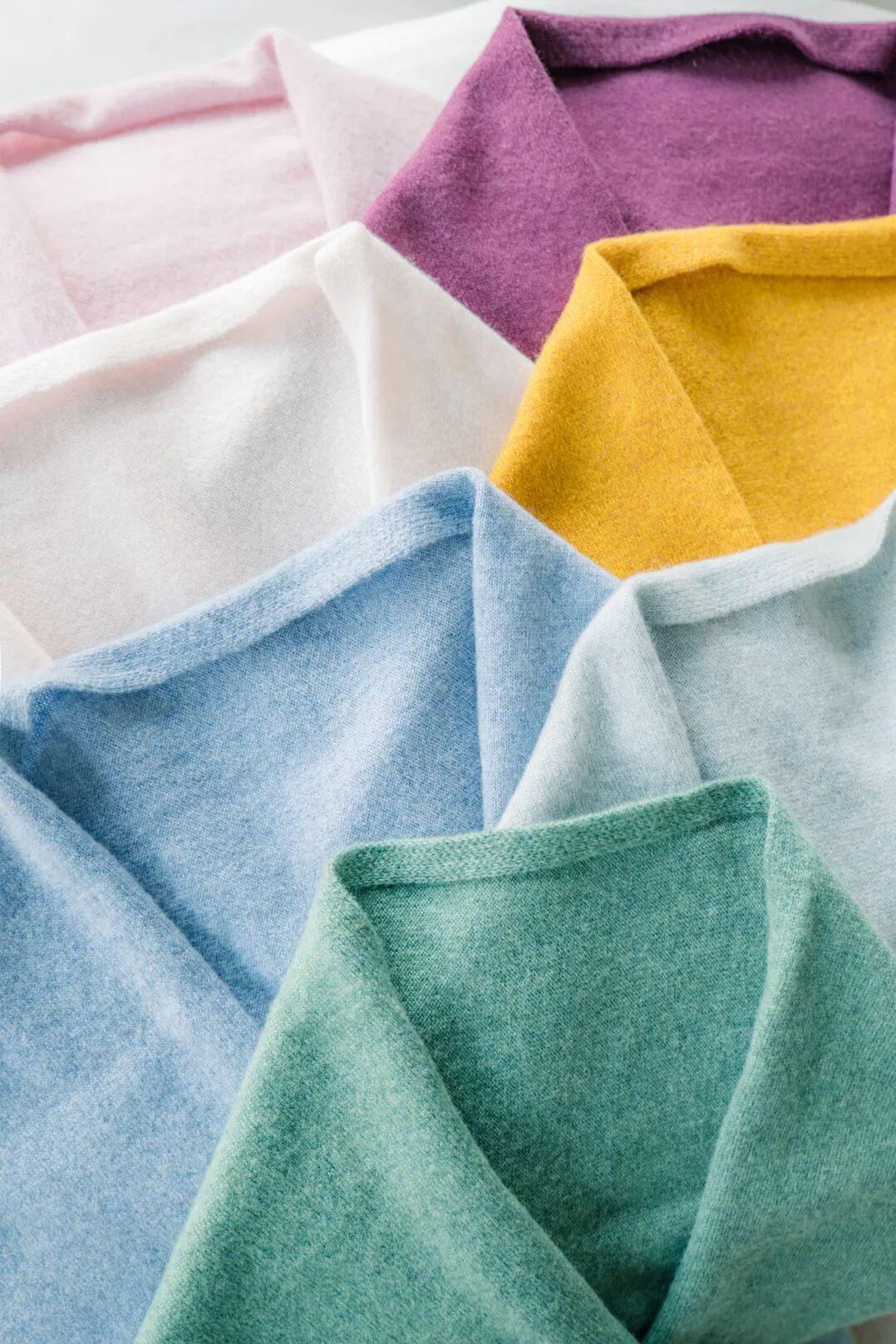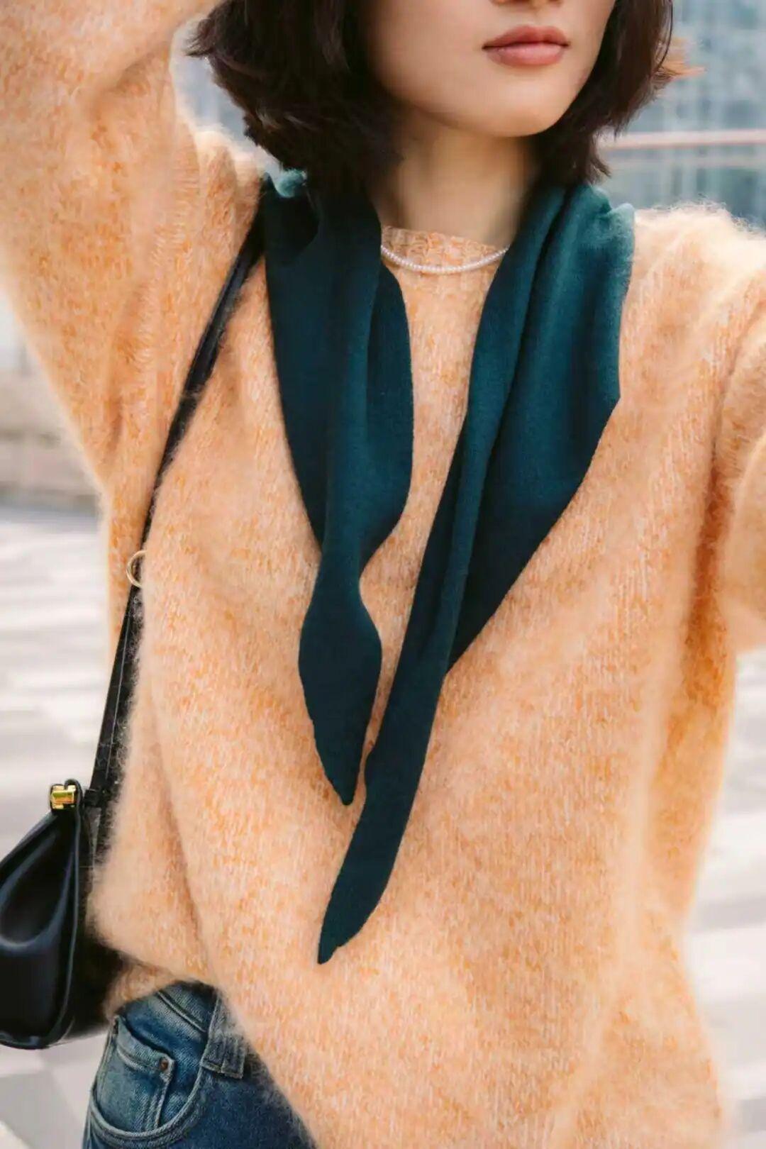 今年低飽和度彩色針織特別受歡迎,如果不想入手大件單品,一條小面積的三角巾就是不錯的選擇。