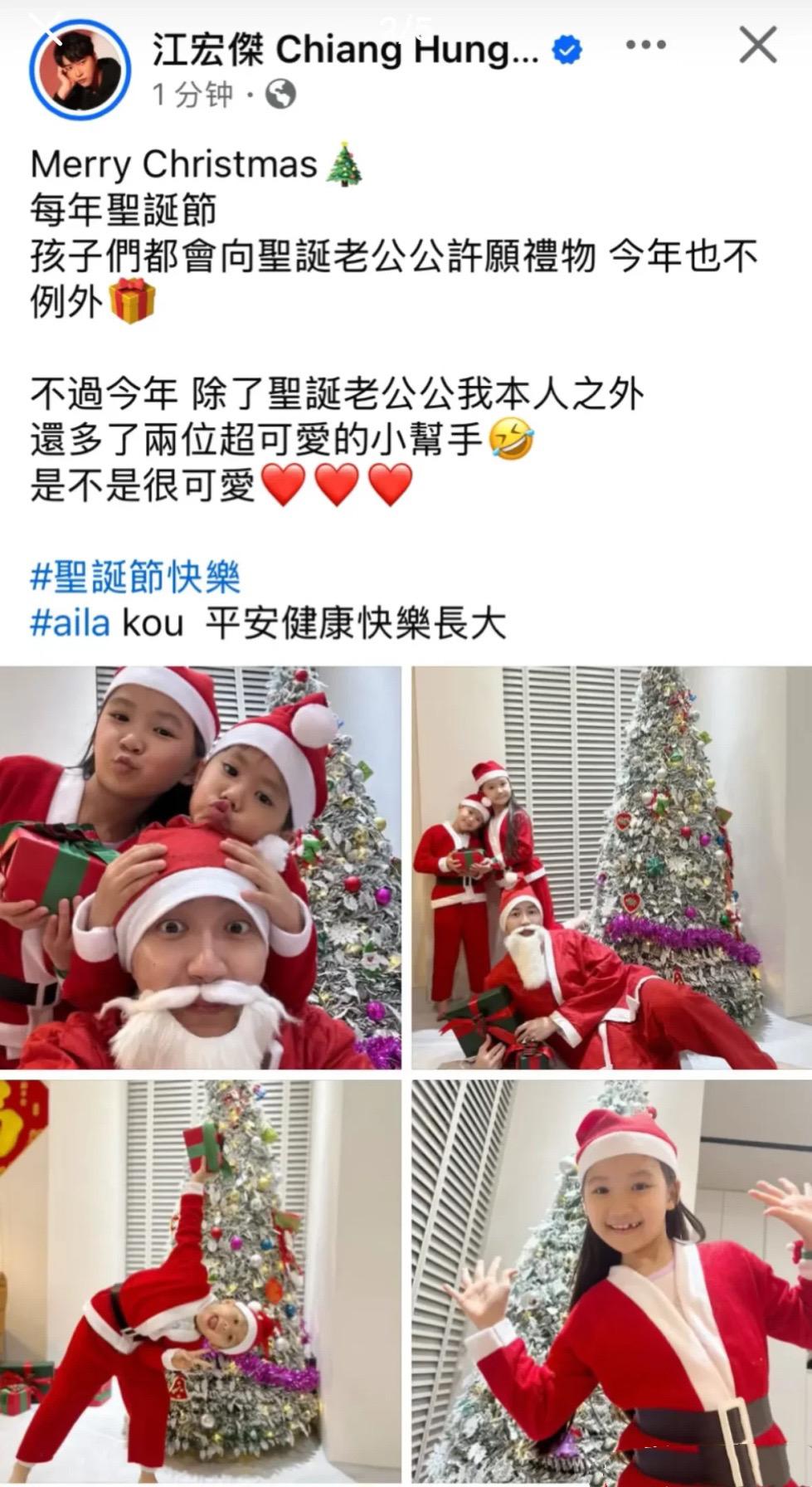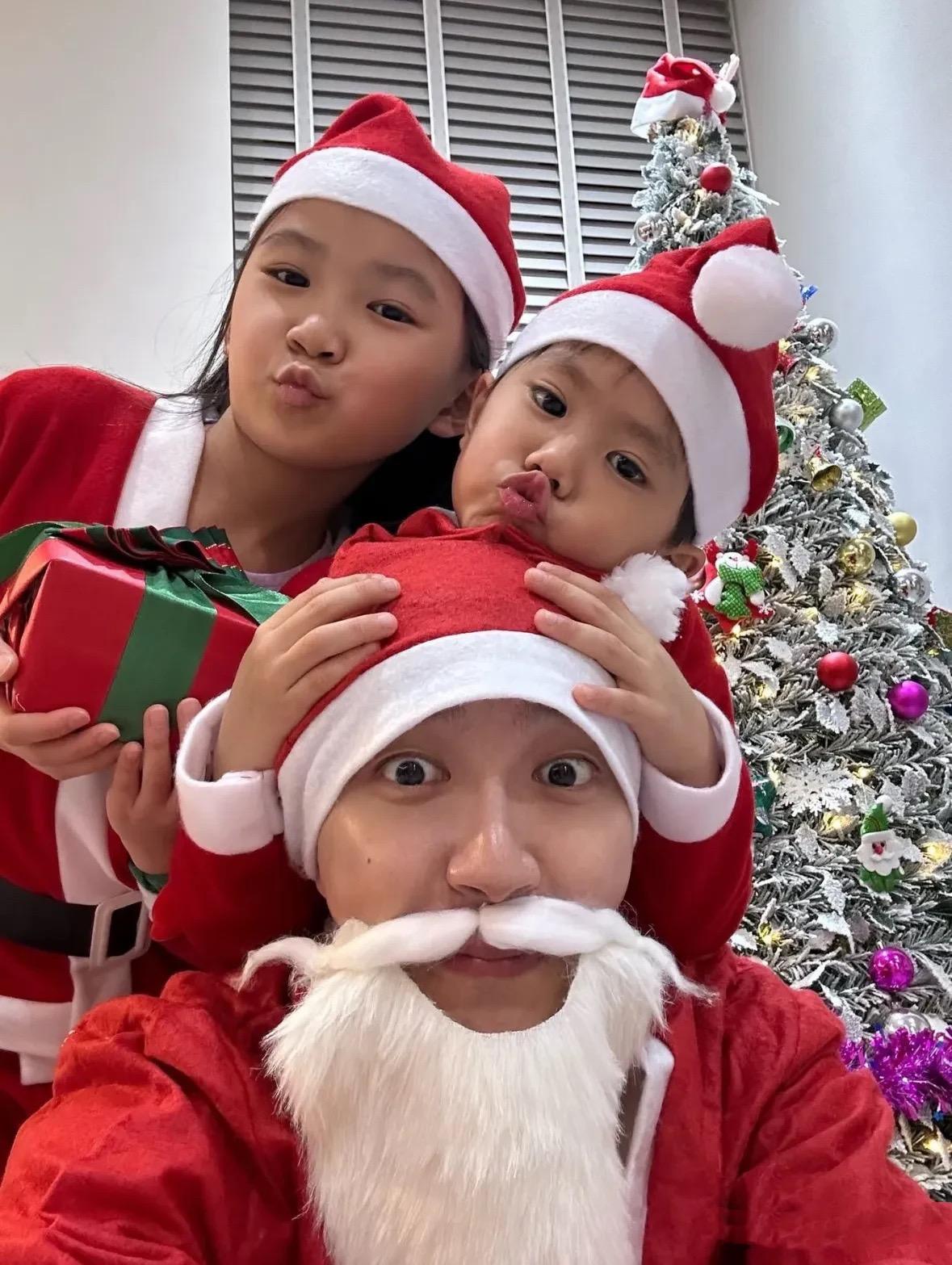這一次不光是有聖誕老爺爺自己了,兩個小幫手也很厲害。在照片中看出江宏傑和福原愛的倆娃都是圓臉,長得更像媽媽。