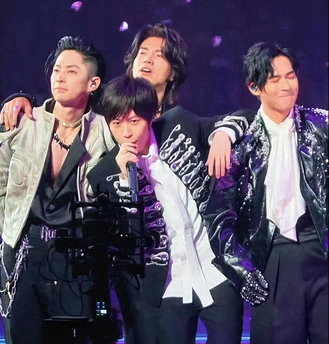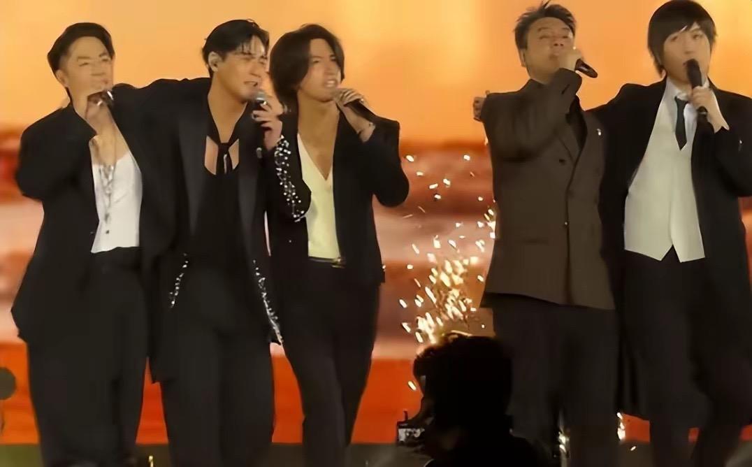 幾個月前F4合體,其他三人都打扮潮流,穿黑色衣服,只有他穿着棕色呢子大衣,身材還發福走樣。