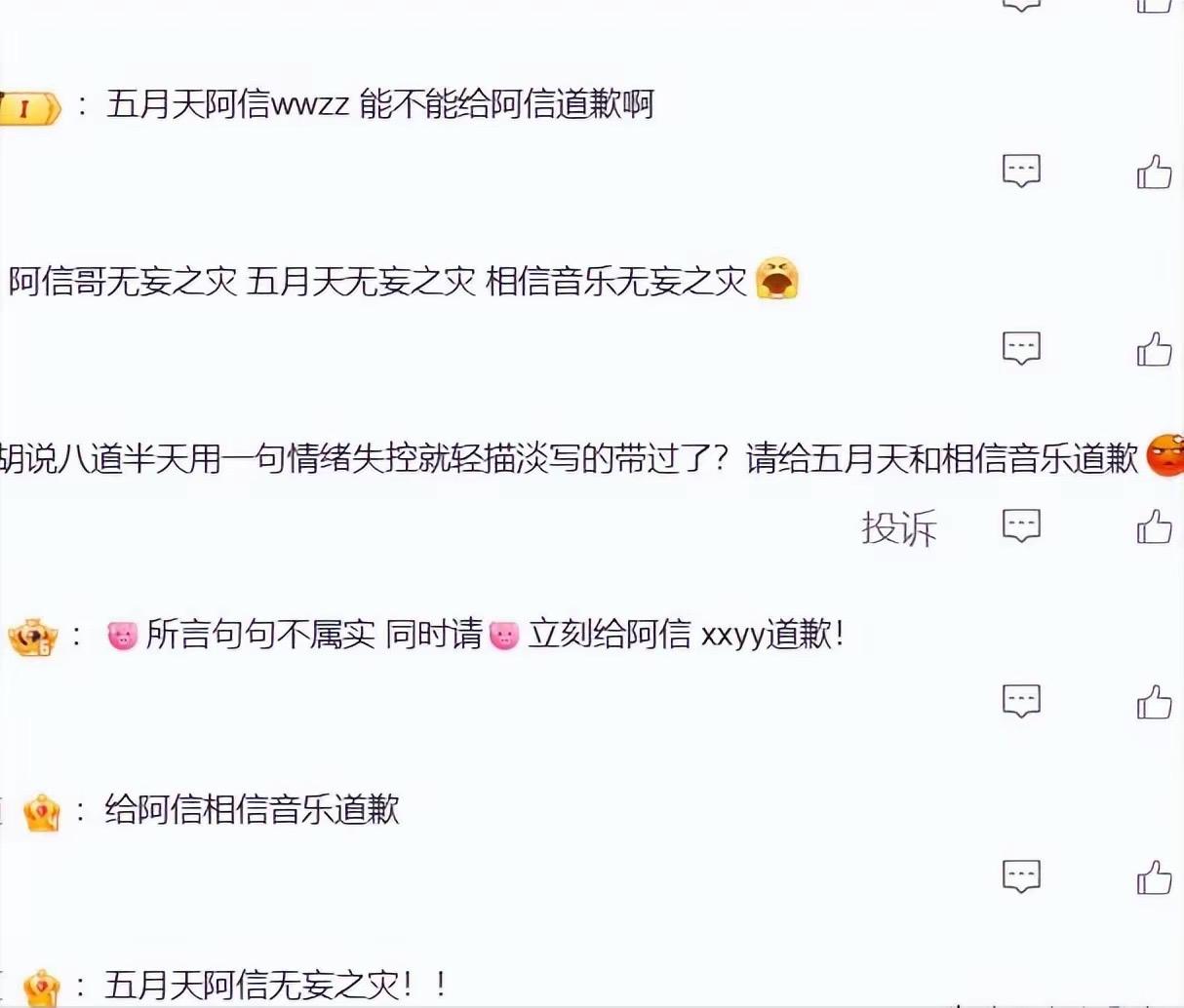 舉報阿信公司、暗諷假唱純屬惡意抹黑