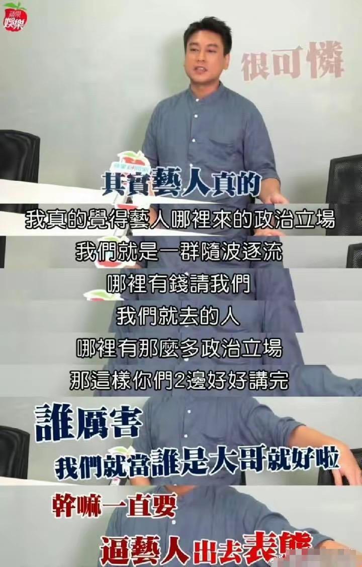 甚至還有網友扒出來朱孝天當年說過的最沒立場的話,原話就是“藝人哪來的政治立場,我們就是一羣隨波逐流,哪裏有錢請我們,我們就去的人”。