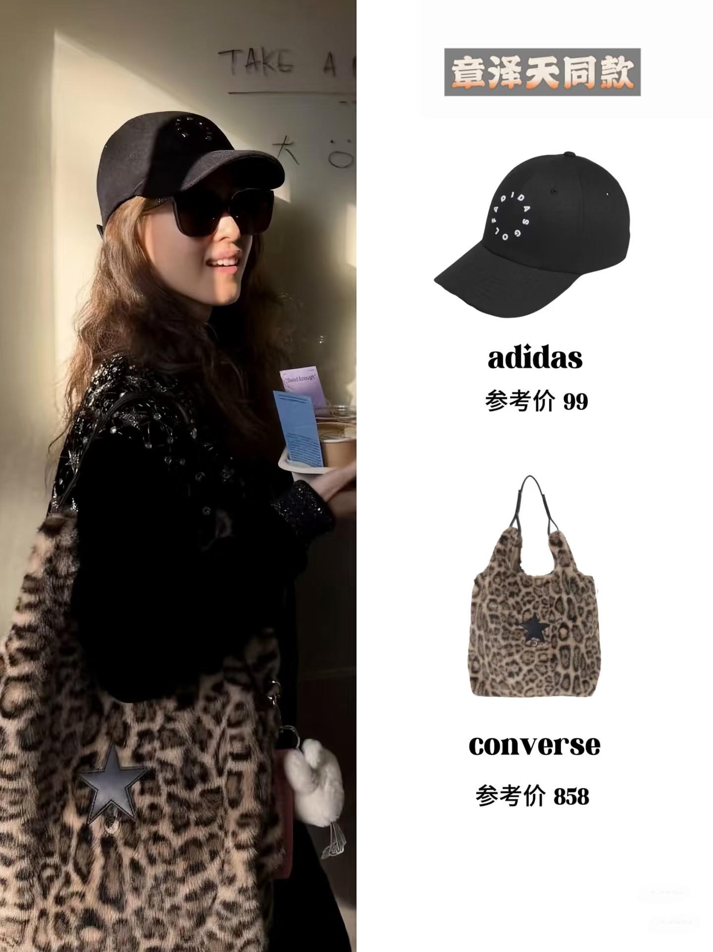 大多數時候,她的衣着都是簡單低調的。像這種99元的棒球帽,幾百塊的豹紋包,都可以讓她搭配出不一樣的時髦範。