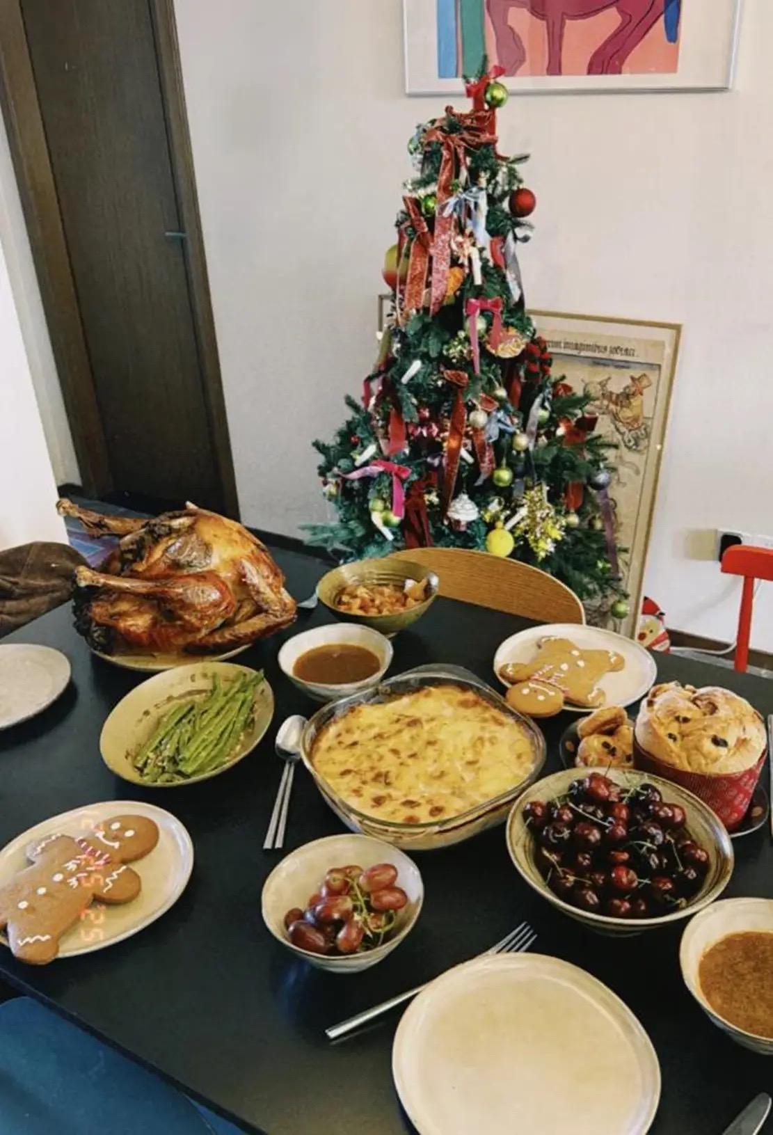 即便是在聖誕節的時候,也是阿諾下廚做飯、準備了一桌子豐盛的美食。