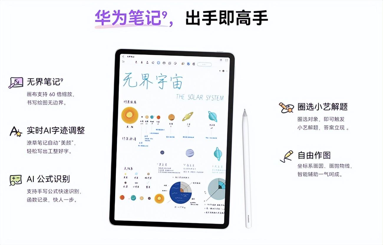 與Air一同發佈的 MatePad 11.5 S則是年輕人的無紙化學習利器。它精準切中了大學生與職場新人的痛點。它搭載的全新一代超清晰雲晰柔光屏,通過納米蝕刻技術消除了99%的眩光,並解決了閃點問題,帶來類紙般的閱讀與書寫體驗。結合華爲筆記的AI排版、公式識別等功能,它迅速成爲了學生黨、考研者和會議記錄者必備神器。
