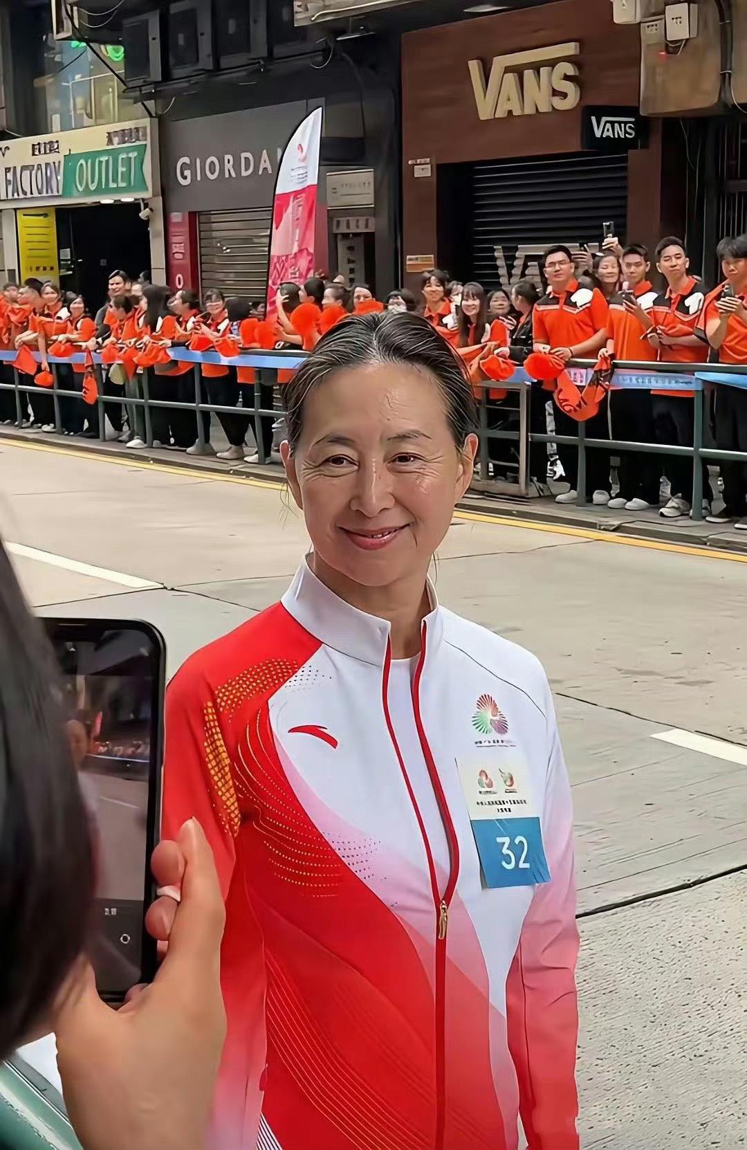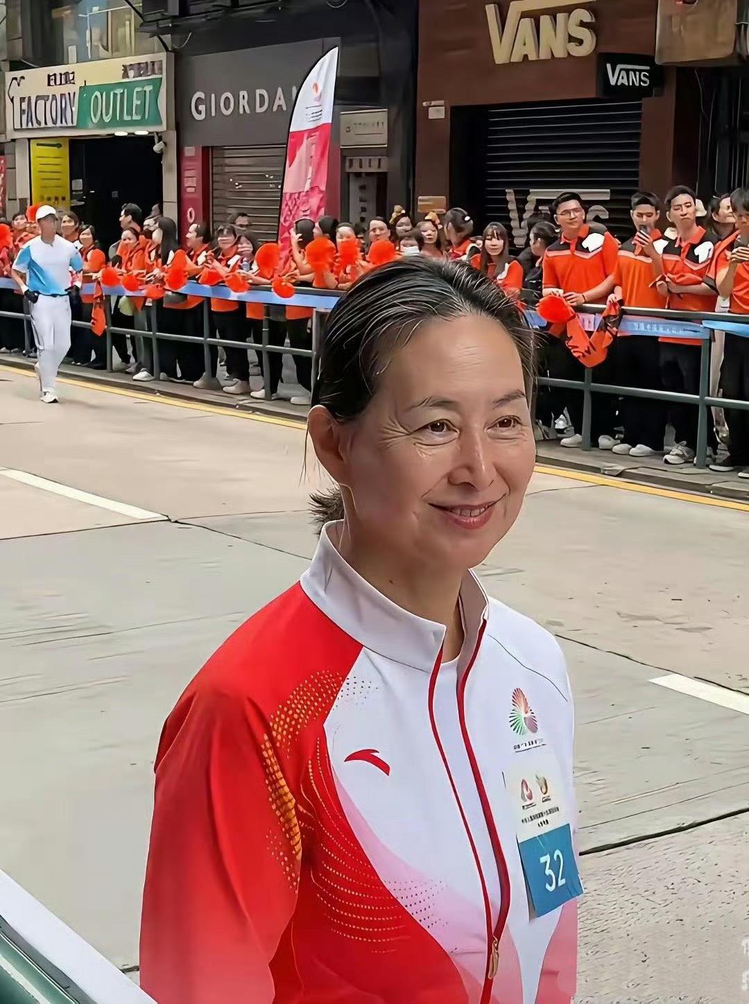 在全運會火炬的傳遞中,何超瓊當起了火炬手。她穿着一身運動衣,也沒有化妝。頭髮白了許多,皺紋裏都是慈祥。