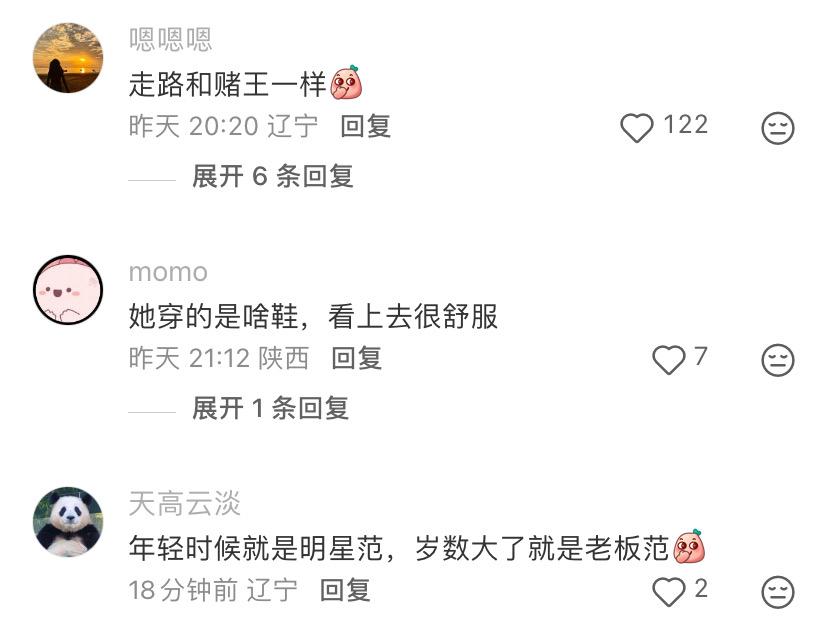 看了何超瓊的狀態,網友紛紛發表評論。說她走路和賭王一樣,穿的鞋子很舒服。年輕時候就是明星範,歲數大了自帶老闆氣場。