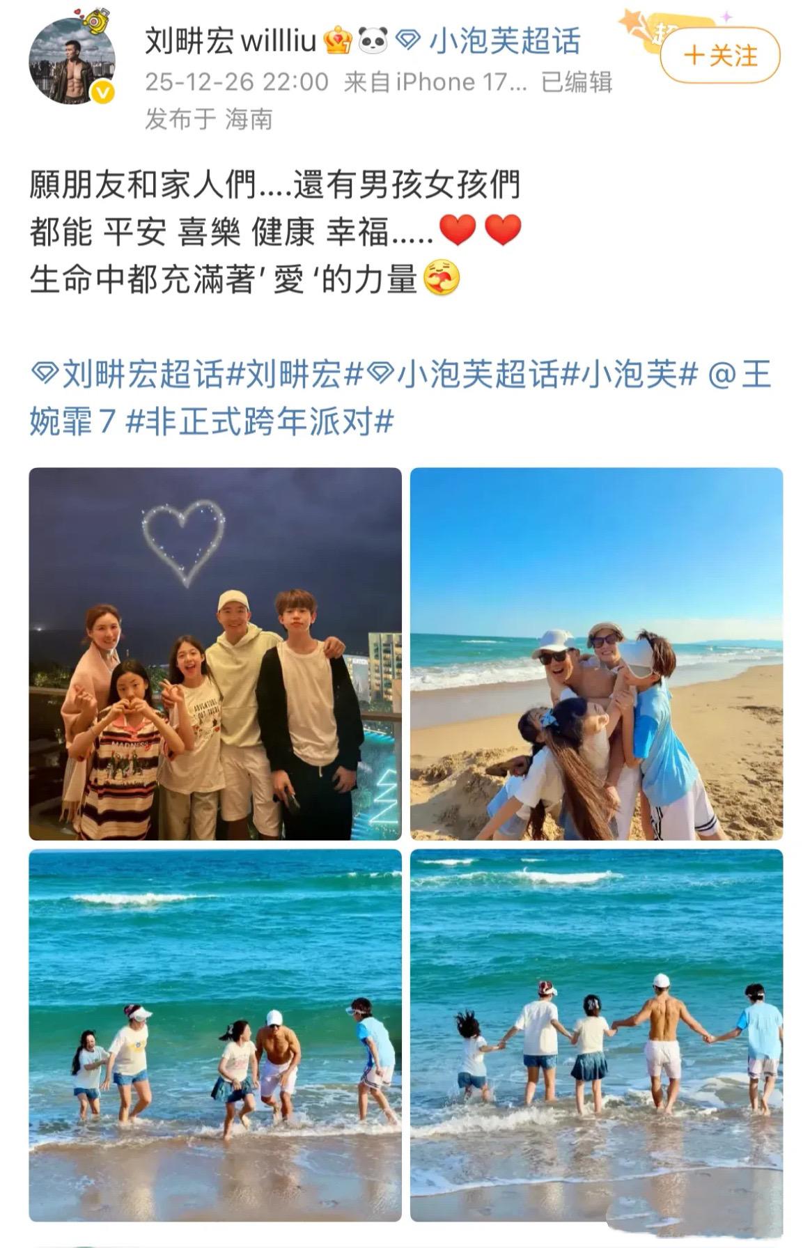 12月26日,劉畊宏更新動態。一家人在海邊度假、看起來非常快樂。
