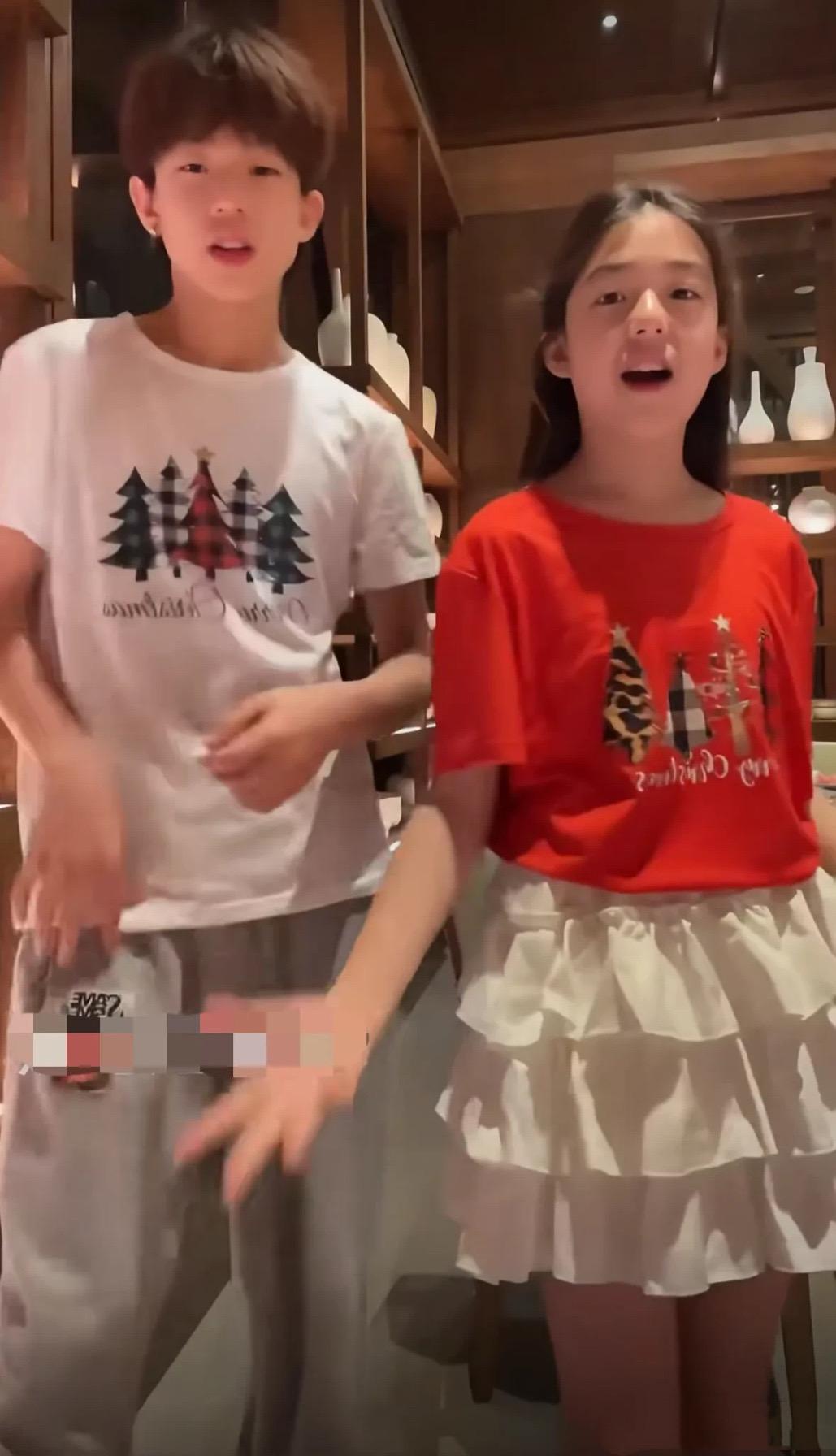 14歲的兒子劉宇恩正在竄個子,身材單薄又高又瘦,目測得有一米八,看着比爸爸劉畊宏都要高了。