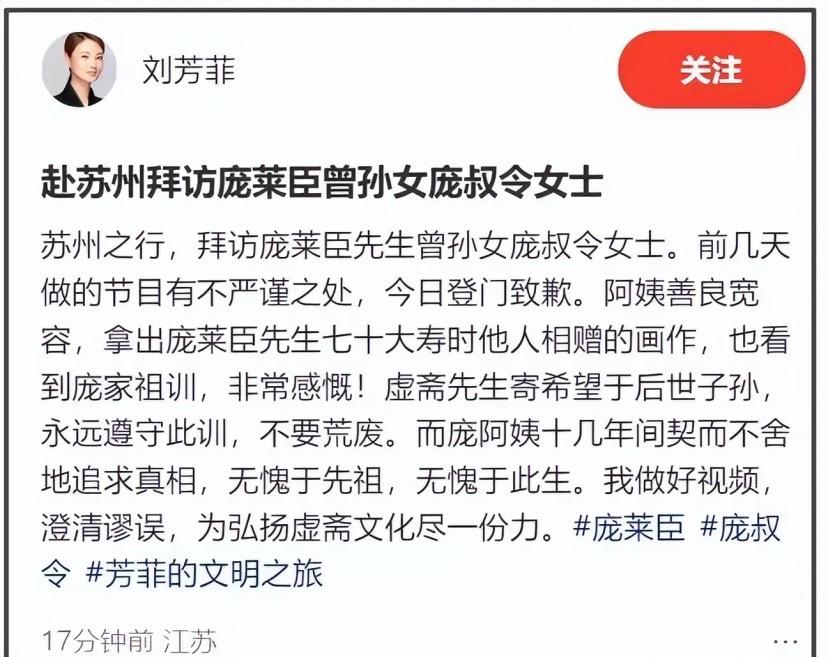前幾天,劉芳菲採訪龐家後人。沒想到被真正的龐家後代當場打假,而劉芳菲也陷入輿論漩渦。