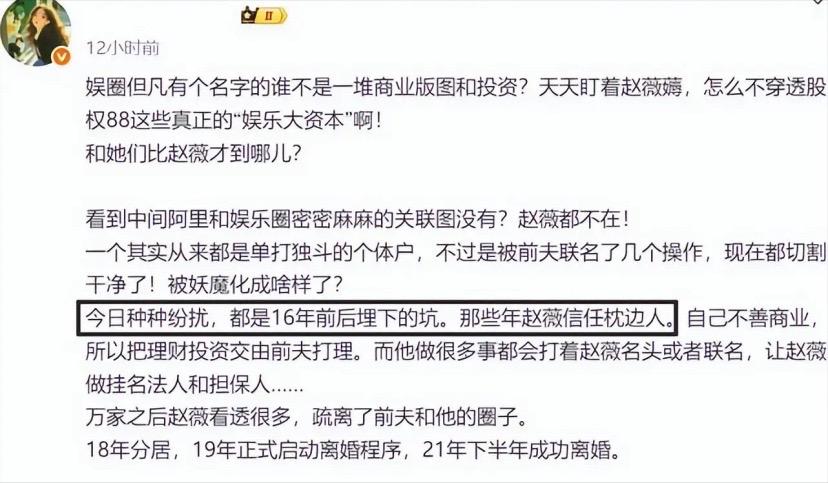 都說“投資有風信”,可總有人不信邪。事業上的轟然倒塌、婚姻上的決裂,讓趙薇再也沒了往日的精氣神。