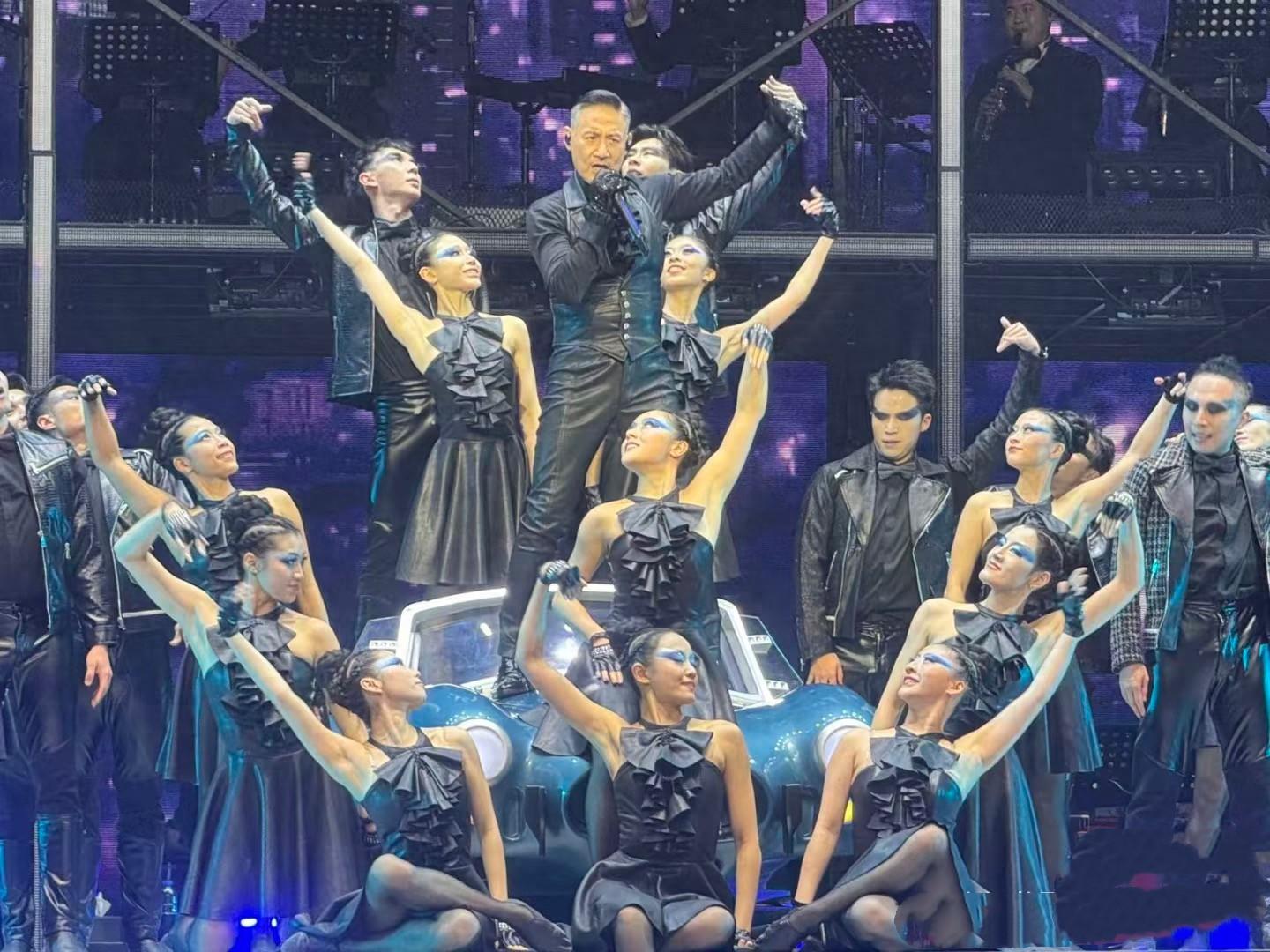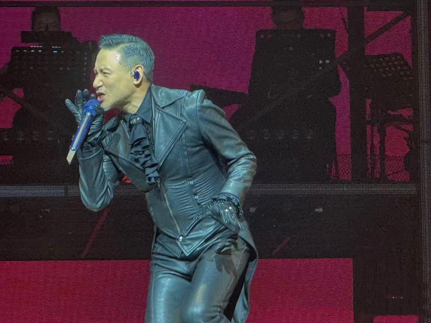別看張學友64歲了,演唱會的陣容絲毫不打折扣。他穿着緊身皮衣,現場又唱又跳、體力不輸20歲的小夥子。
