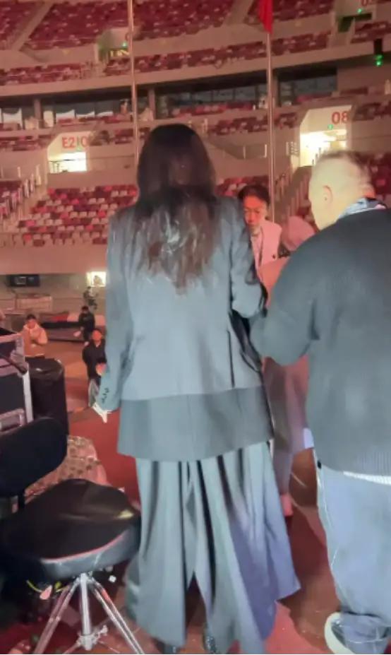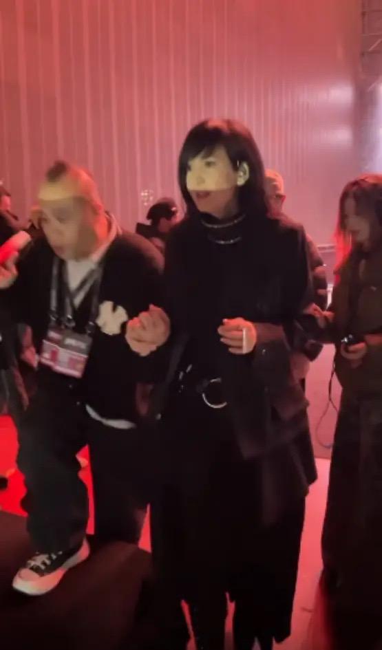 她穿一身黑衣,看着身形壯碩了不少、臉都腫了。甚至上臺的時候需要2位工作人員攙扶,給人一種有氣無力的感覺。
