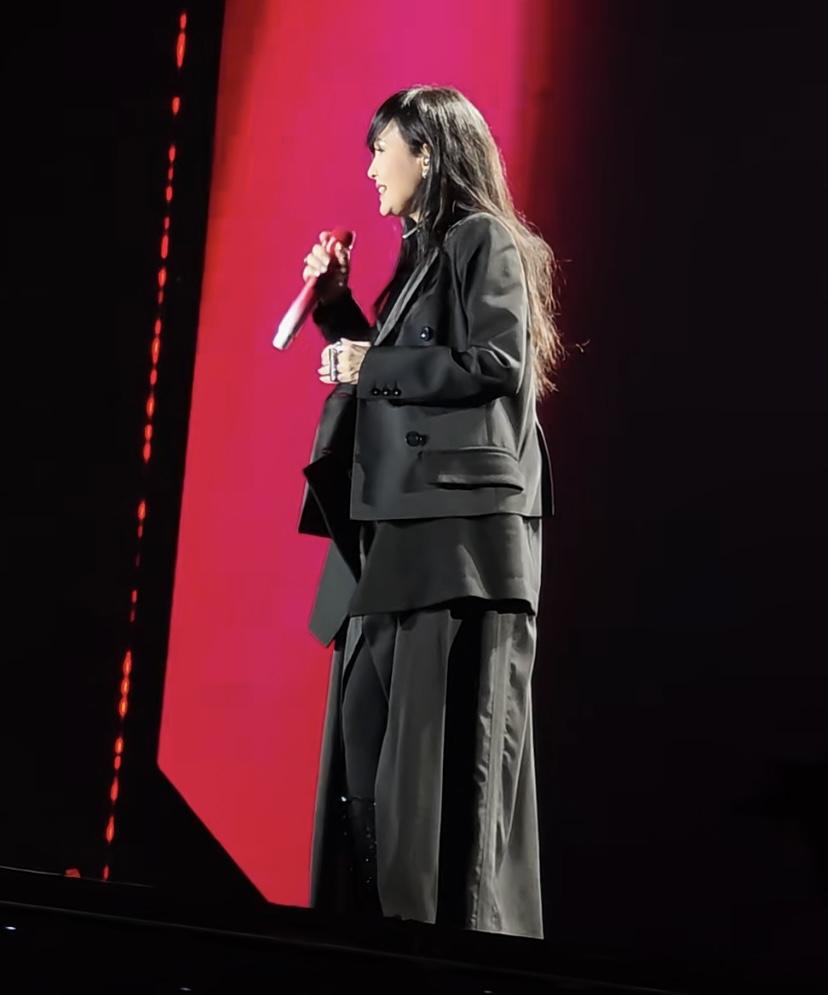 她的臉腫的厲害,還出現了雙下巴。頭髮也比較毛躁,演唱會的表現很一般、甚至有點寡淡無味。