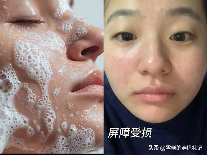清潔是護膚的第一步,但很多人陷入了“清潔越徹底越好”的誤區,尤其是油皮和痘痘肌人羣,總覺得臉沒洗乾淨就容易悶痘、長閉口。於是每天用強力清潔的皁基洗面奶,甚至一天洗好幾次臉,還頻繁使用磨砂膏、酸類產品去角質,試圖把皮膚“搓得乾乾淨淨”。殊不知,健康的皮膚表面有一層皮脂膜,它能鎖住水分、抵禦外界刺激,而過度清潔和頻繁去角質,會直接破壞這層保護膜,導致皮膚屏障受損。屏障受損後的皮膚,會變得敏感泛紅、乾燥起皮,鎖水能力大幅下降,細紋和幹紋也會隨之找上門。更可怕的是,受損的皮膚屏障還會讓皮膚抵抗力變差,更容易被紫外線和污染物傷害,進而加速黑色素沉澱和膠原流失,讓你看起來比同齡人更顯老。