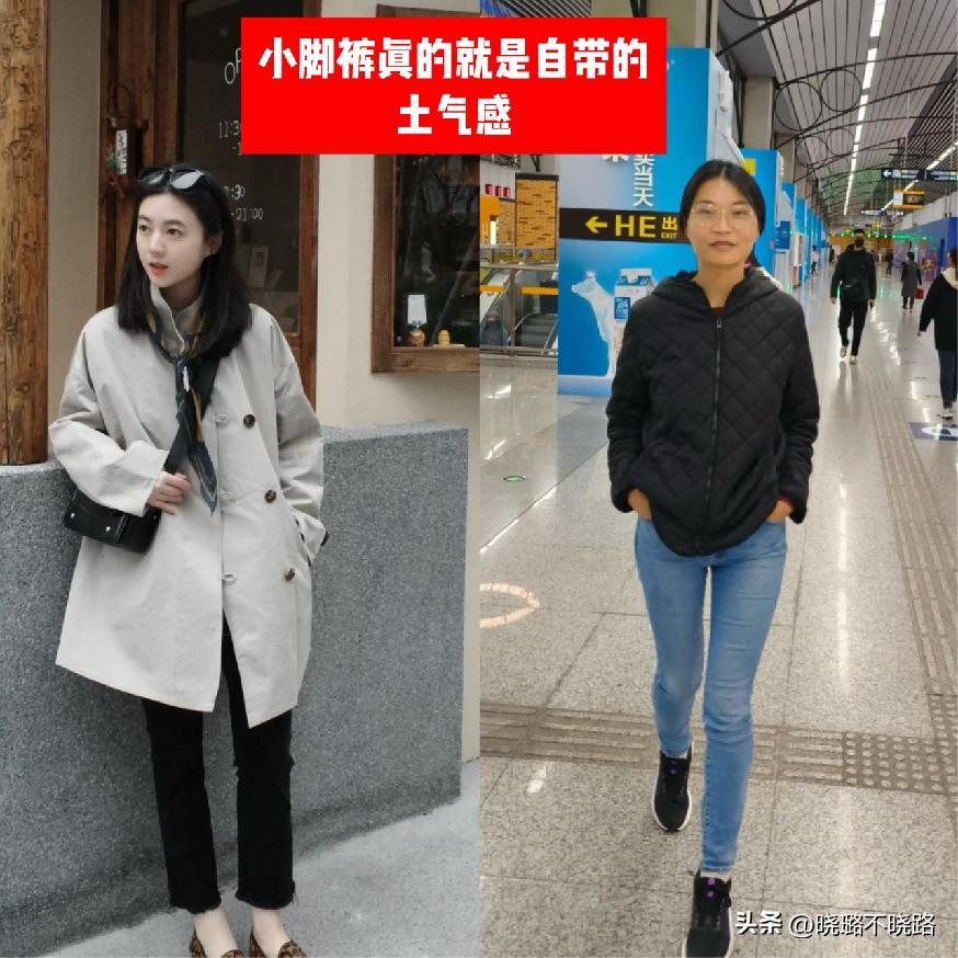 不管是羽絨服還是長款的大衣,如果你搭配小腳褲的話,那麼整體的穿搭他在視覺的調性上就是完全不匹配的,所展現出來的身材狀態也幾乎沒有任何的優勢,因爲小腳褲它是在小腿的部位就非常緊身的元素,所以就很容易暴露身材的狀態,不足凸顯出來的效果土氣又老氣。