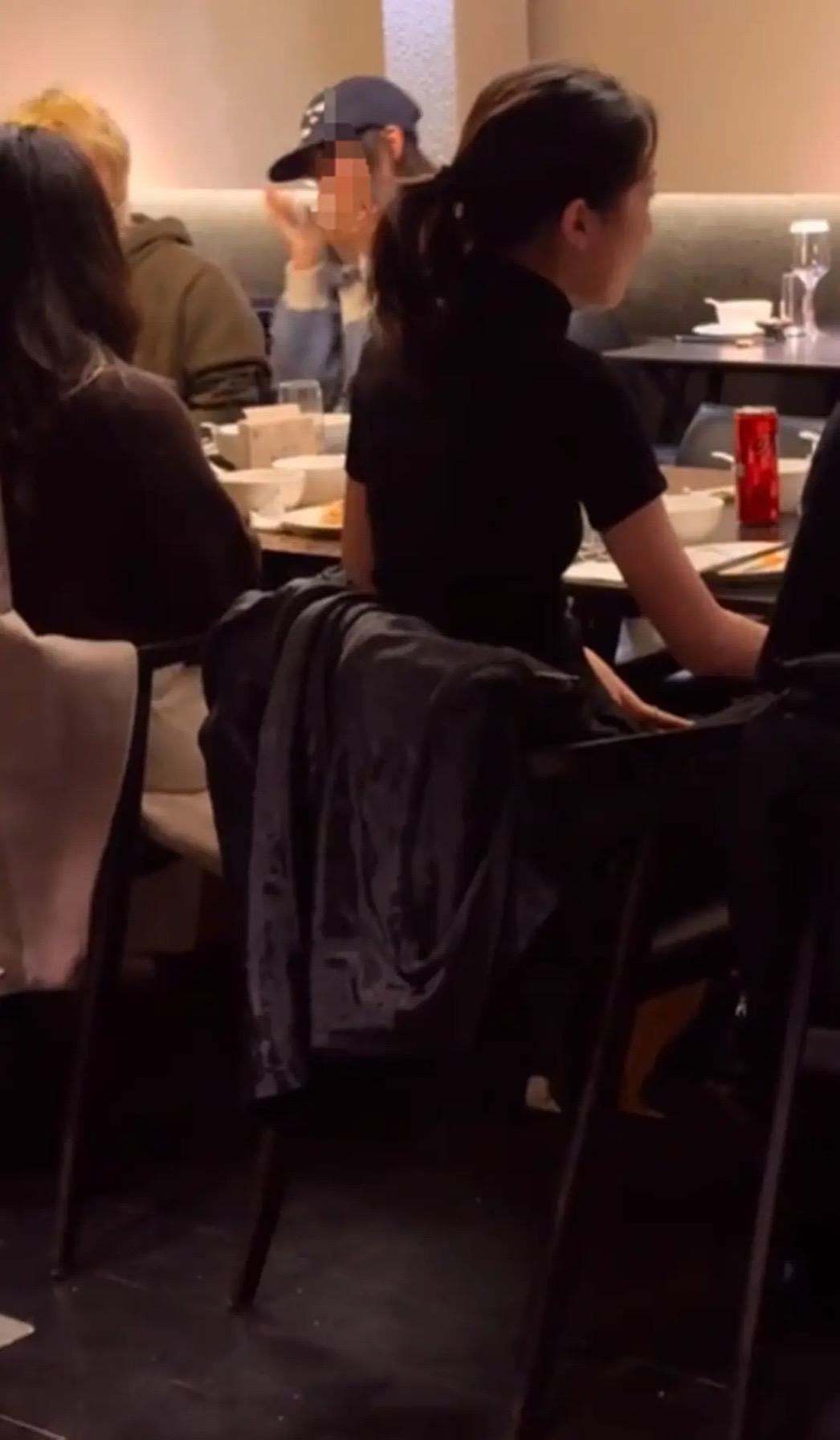 雖然是在餐廳裏面,但身邊的人幾乎都穿長袖,只有李嫣一個人穿着短袖的上衣。她背影又瘦又薄的,看着儀態特別好、身材也很優越,非常有氣質。